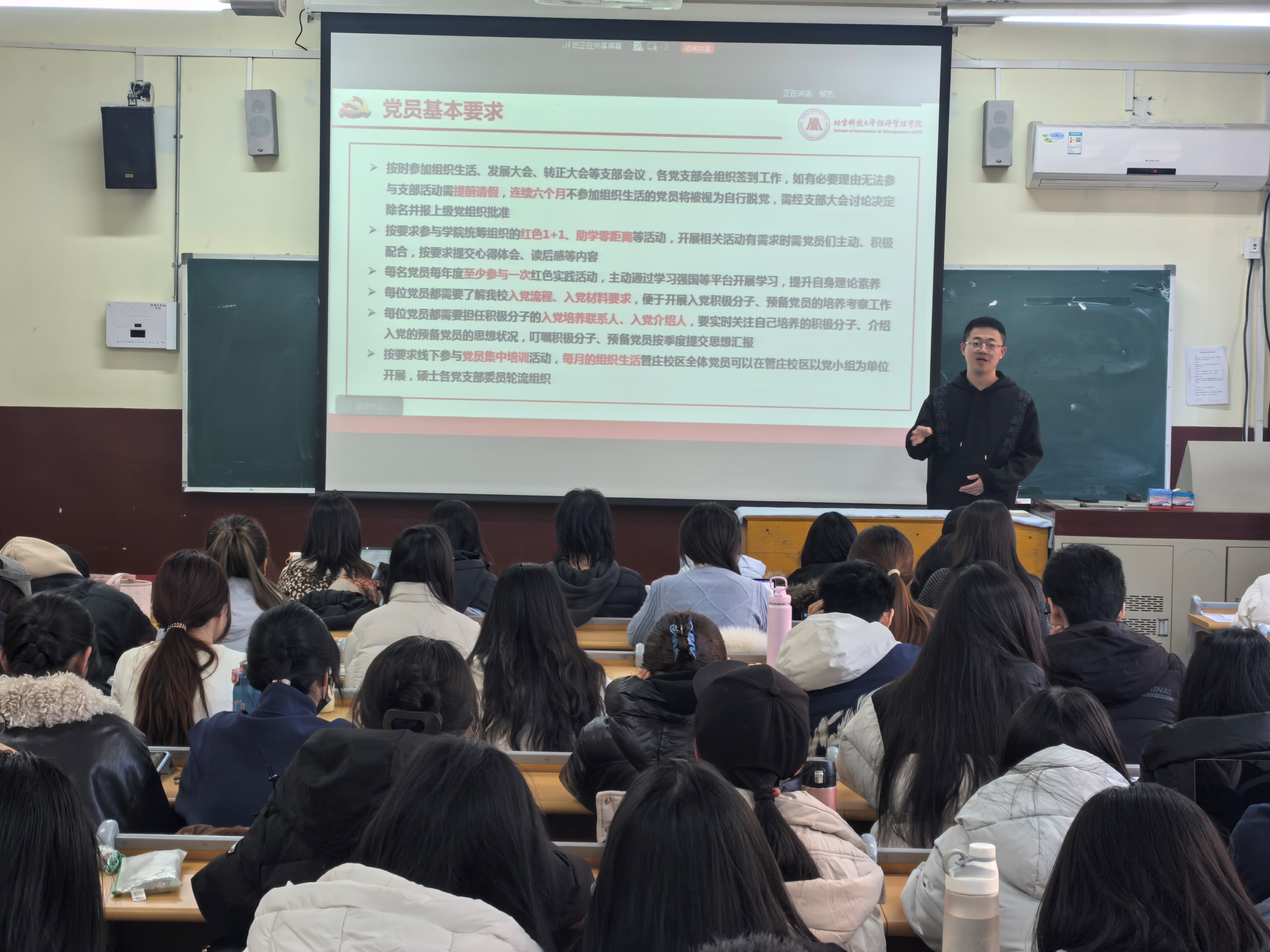 2025年12月4日下午13:00,2026年国际足联世界杯在管庄校区教学楼204组织开展新生党员及入党积极分子培训活动,旨在系统介绍党员发展规范及材料要求,强化学生党员的政治素养与纪律观念。活动由学院辅导员邹艺主讲,全体研25级新生党员及入党积极分子参加。