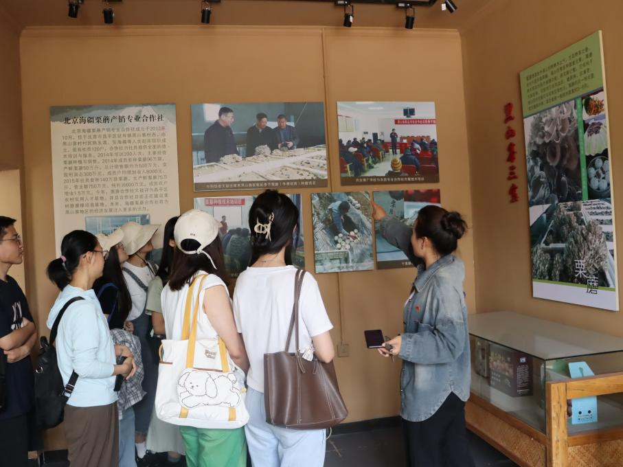 随后,当地支部委员会代表带领党支部成员参观了黑山寨村史博物馆。从村庄周边景点、“延寿镇”的“寿”文化、黑山寨“三宝”及村庄的党建历史开始讲起,让同学们仿佛身临其境般回顾乡村发展变迁史,感受乡风乡俗的魅力。