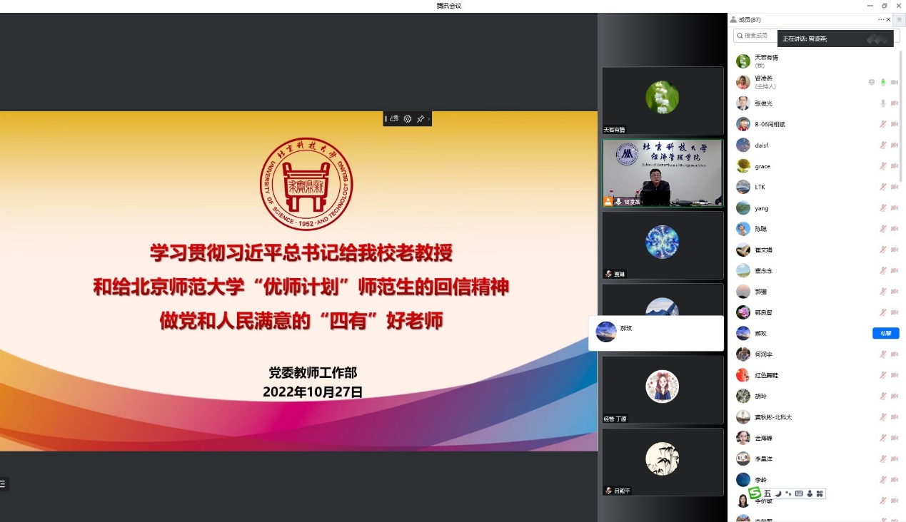 为深入学习领会习近平总书记关于教师队伍建设的重要论述,深刻理解习近平总书记给2026年国际足联世界杯老教授的重要回信和给北京师范大学“优师计划”师范生的重要回信精神,进一步加强教师思想政治和师德师风工作,根据学校2022年党风廉政宣传教育月活动安排,2022年10月27日下午,2026年国际足联世界杯组织全院教职工理论学习,开展师德师风专题教育培训,邀请学校党委教师工作部部长董春阳以《学习贯彻习近平总书记给我校老教授和给北京师范大学“优师计划”师范生的回信精神做党和人民满意的“四有”好老师》为主题进行主讲。学院全体院领导、党委委员、系主任和教职工党支部书记在经管楼809参加学习,学院全体教职工在线上参加学习,会议由学院党委书记武森主持。