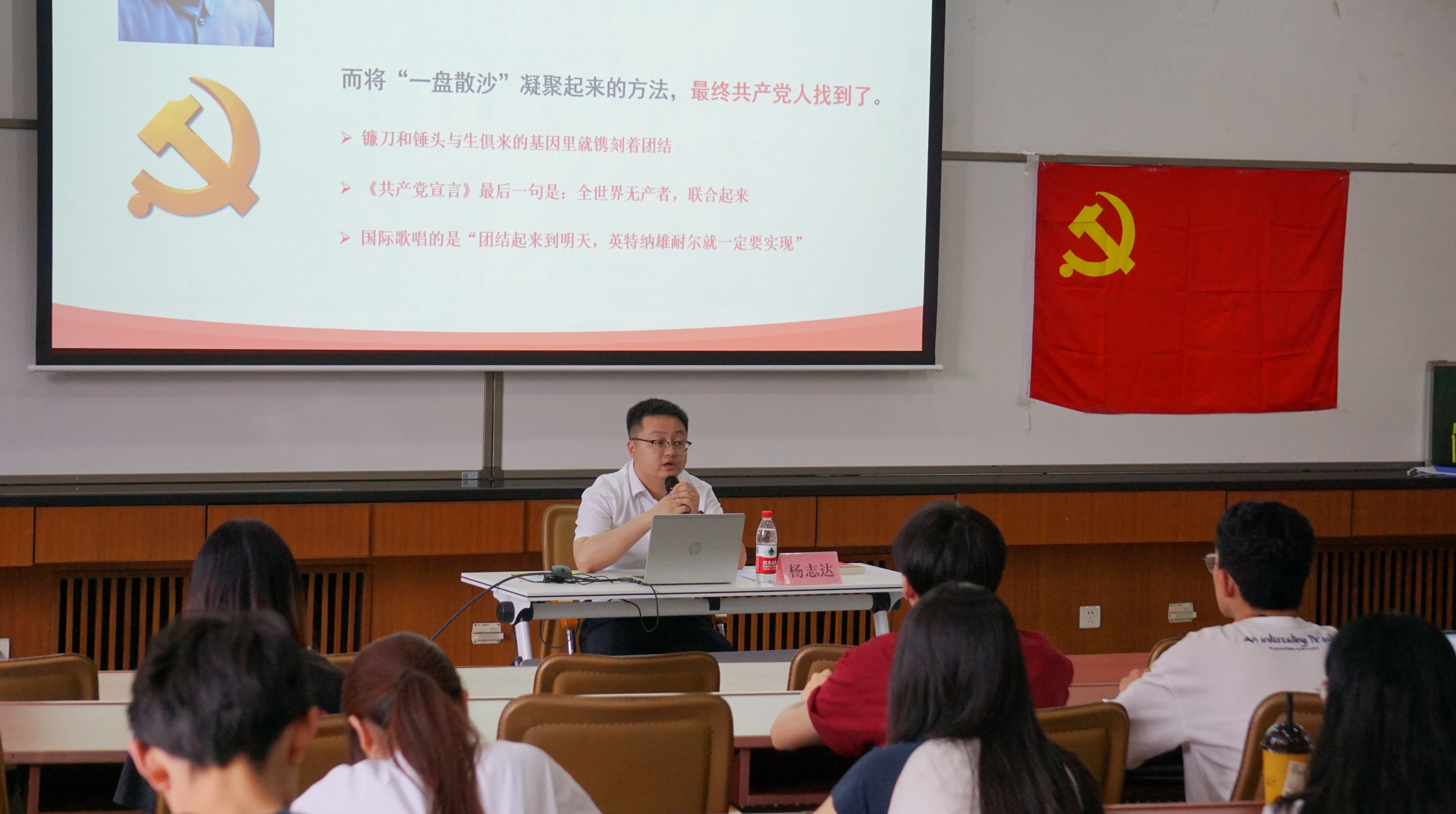 6月8日下午,学院党委副书记杨志达于经管楼312为学院预备党员培训班学员讲授《在党的旗帜下团结成“一块坚硬的钢铁”》主题党课。