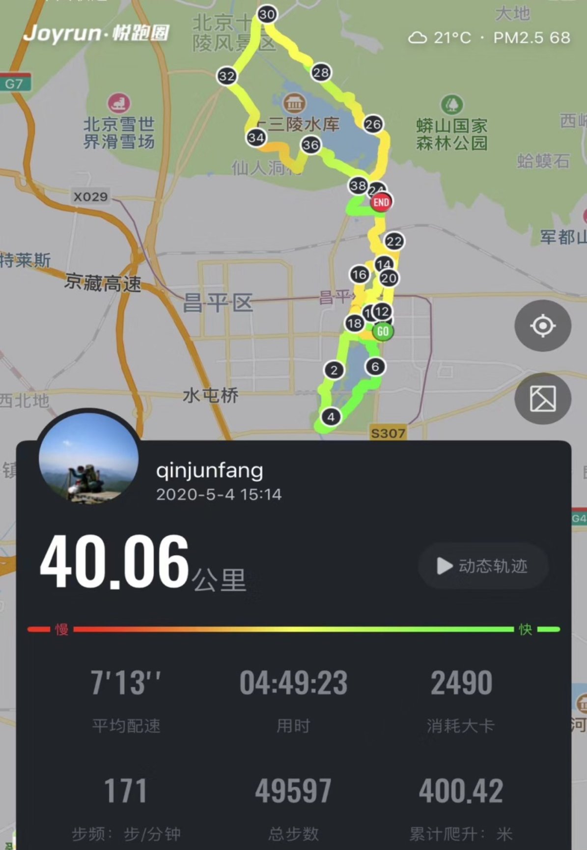 5月4日奔跑在万亩滨河森林公园和美丽的十三陵水库