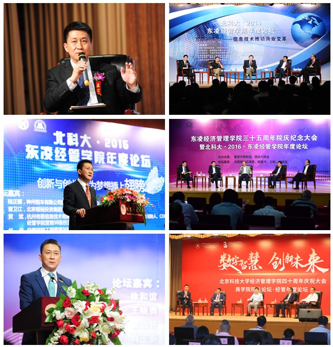 历年来,他也曾多次受邀回校参加经管年度论坛、经管校友讲坛并担任主持人、嘉宾。从“互联网革命——信息技术推动商业变革”为主题的北科大•2014•东凌经管学院年度论坛,“创新与创业——为梦想插上翅膀”为主题的北科大•2015•东凌经管学院年度论坛,“重塑中国制造:挑战与使命”为主题的东凌经管学院35周年院庆纪念大会暨北科大·2016·东凌经管学院年度论坛,“从制造到智造:创新与挑战”为主题的2017东凌经管学院年度论坛,到“机遇与挑战——碳中和背景下的中国钢铁工业”为主题的北科大·2021·经管年度论坛,总能见到王晓勇的身影。在每一次不同的年度论坛上,他都用其幽默的语言风格与敏捷的思维逻辑,引导参会的年度论坛嘉宾各抒己见,畅所欲言,围绕不同主题展开多维度、多视角的深入探讨,点燃现场气氛。
