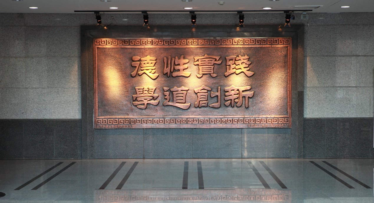 回想起捐赠铜匾背后的故事,王昕满脸动容道:“我们想送一件永久性的纪念品,它不但在物质上是永久的,在精神上也是永久的,大楼是要伴随学院很长时间存在下去的。”一直从事有色金属行业的王昕对铜材料有着特殊的感情,铜材料坚固而敦厚的属性正可以很好地承载这一愿望,于是王昕决定将对母校深厚的感情熔铸在自己最喜爱的铜材料中。斟酌良久后,王昕从做人做学问的角度和对教育内涵理解的深度出发,结合中国传统文化与科学精神提出了“德性实践,学道创新”八个字。