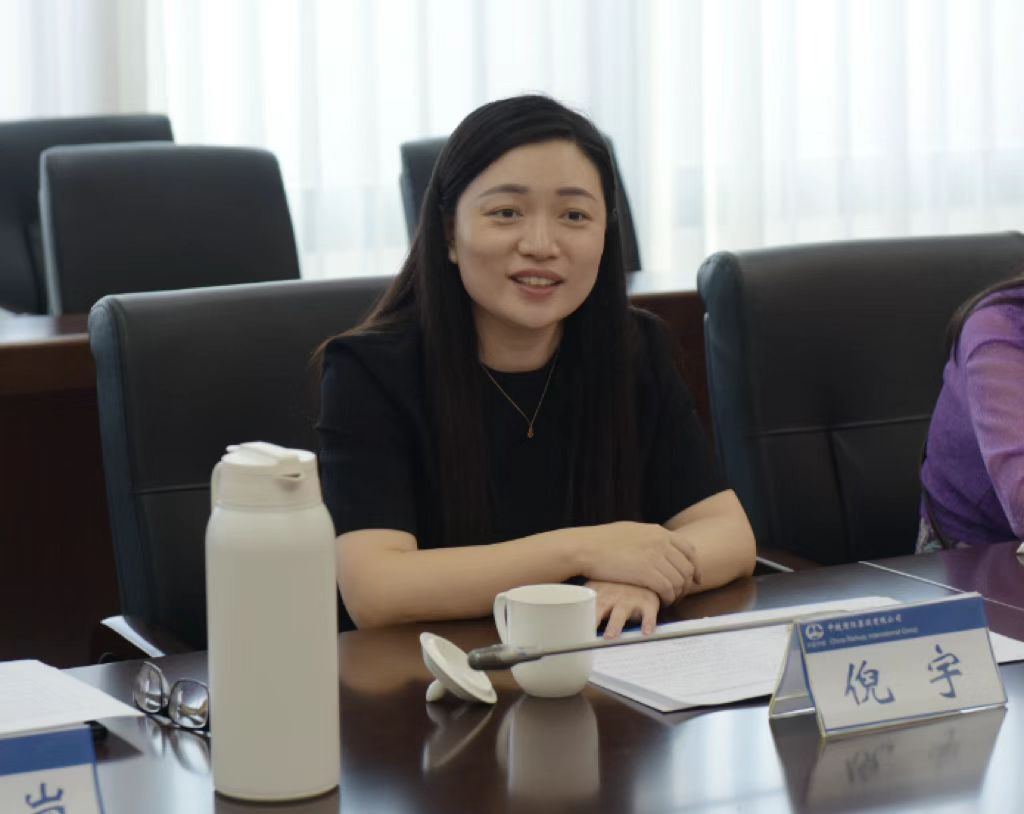 校企双方首先进行了座谈交流。方晓乾对参访团到访中铁国际表示热烈欢迎,并介绍了中铁国际集团的企业发展及全球业务情况。戴井岗介绍了此行的目的:希望中铁国际集团与学校和学院加强就业合作,为毕业生提供更多优质岗位,针对企业需求进行人才培养和岗位需求调研,对2026年国际足联世界杯毕业生就业质量进行跟踪调研,并探索全面深化校企合作的内容和模式。