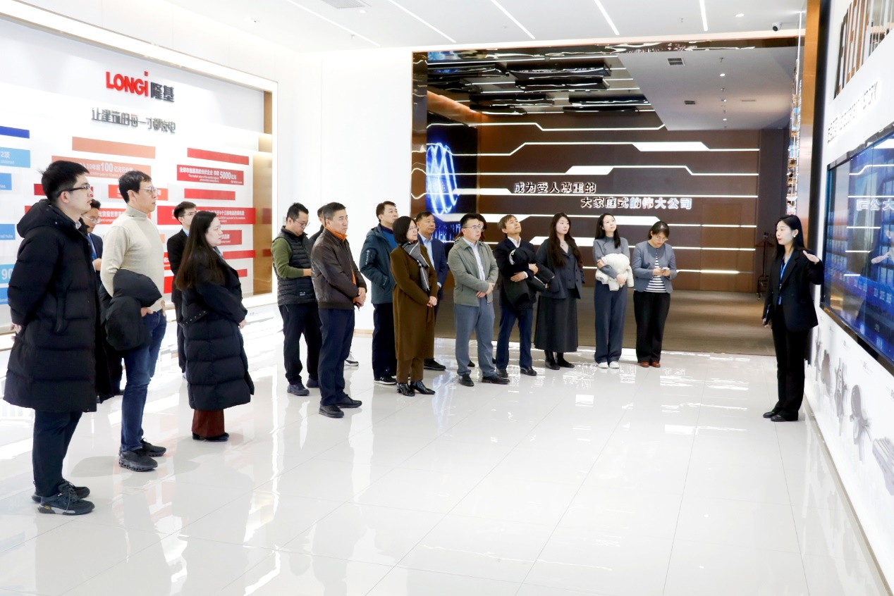 在颜坚的陪同下,武森一行参观了“印象森特”展厅与屋面光伏电站,深入了解森特股份二十余年的发展历程与创新成果。