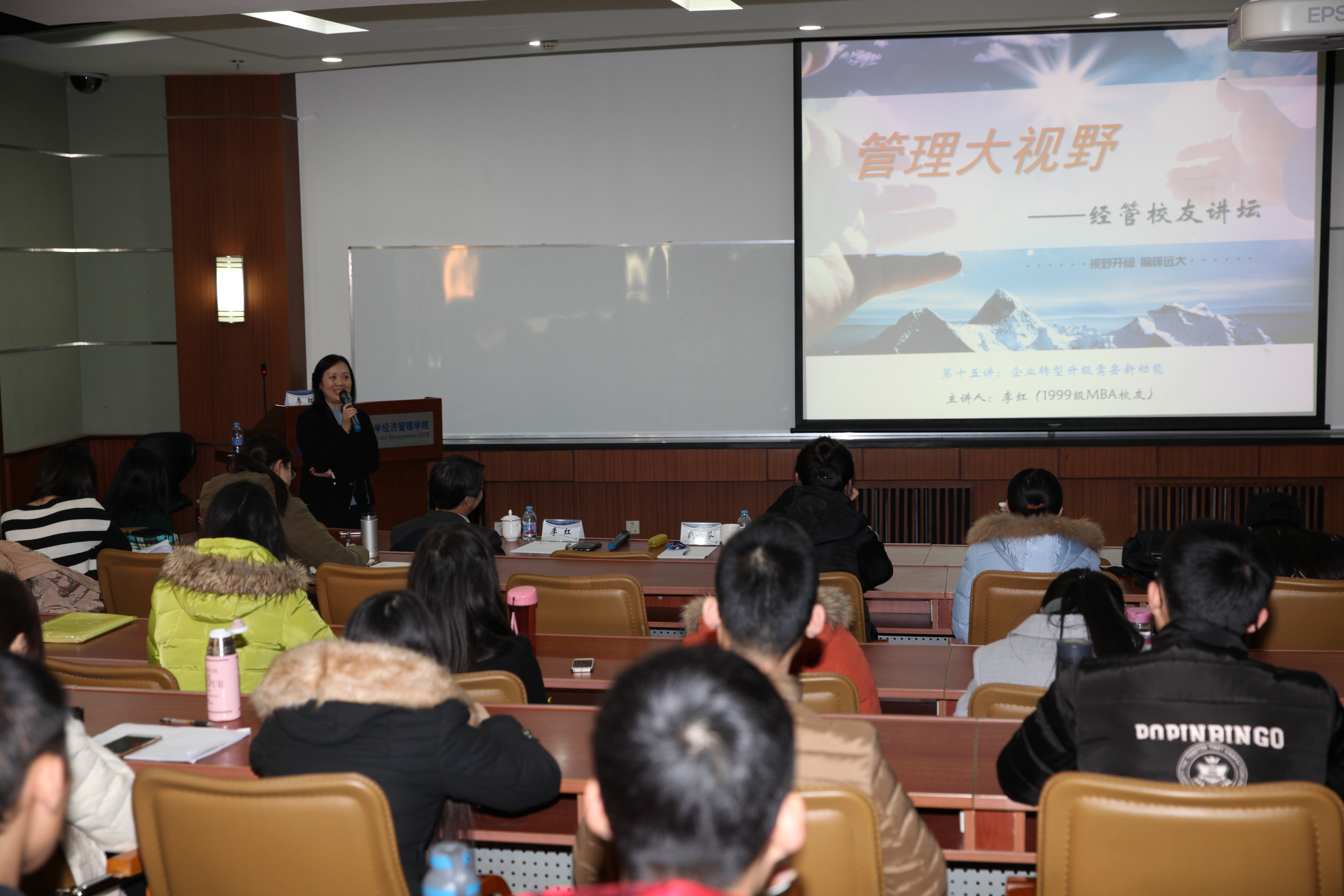 2016年11月23日,“管理大视野—经管校友讲坛”第十五讲在经管楼312教室举办。本期讲座主题为“传统企业转型升级需要利用新动能”,主讲嘉宾为世界杯官网MBA1999级校友李红。李红校友目前就职于中国中钢集团公司,任信息管理中心总经理。