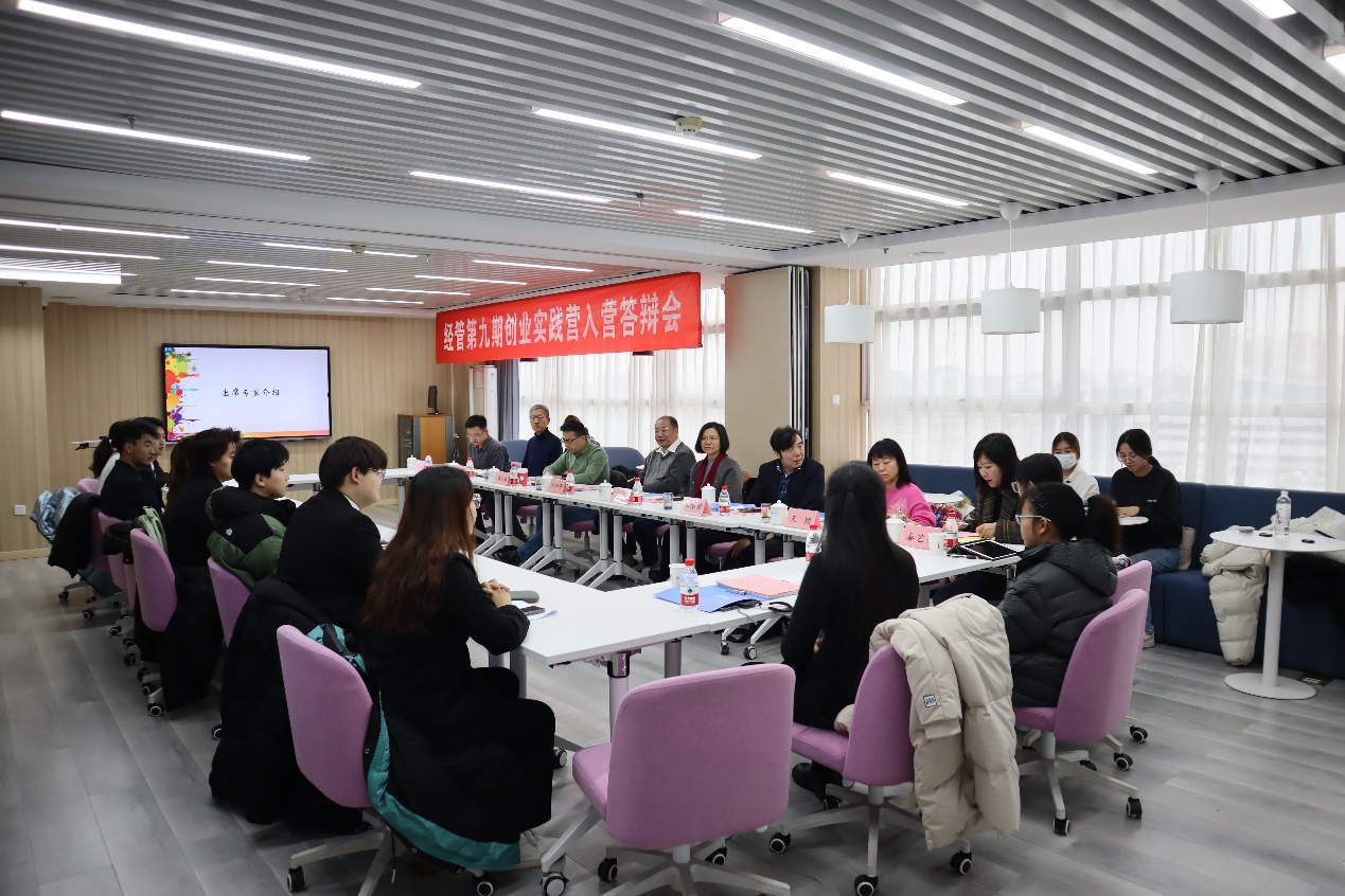 2023年12月10日上午九点,为了培养学生创新创业的热情和能力,学院在经管楼1205举行了第九期经管创业实践营入营申请答辩会,此次答辩会以校友专家指导和创业团队初步展示为主。