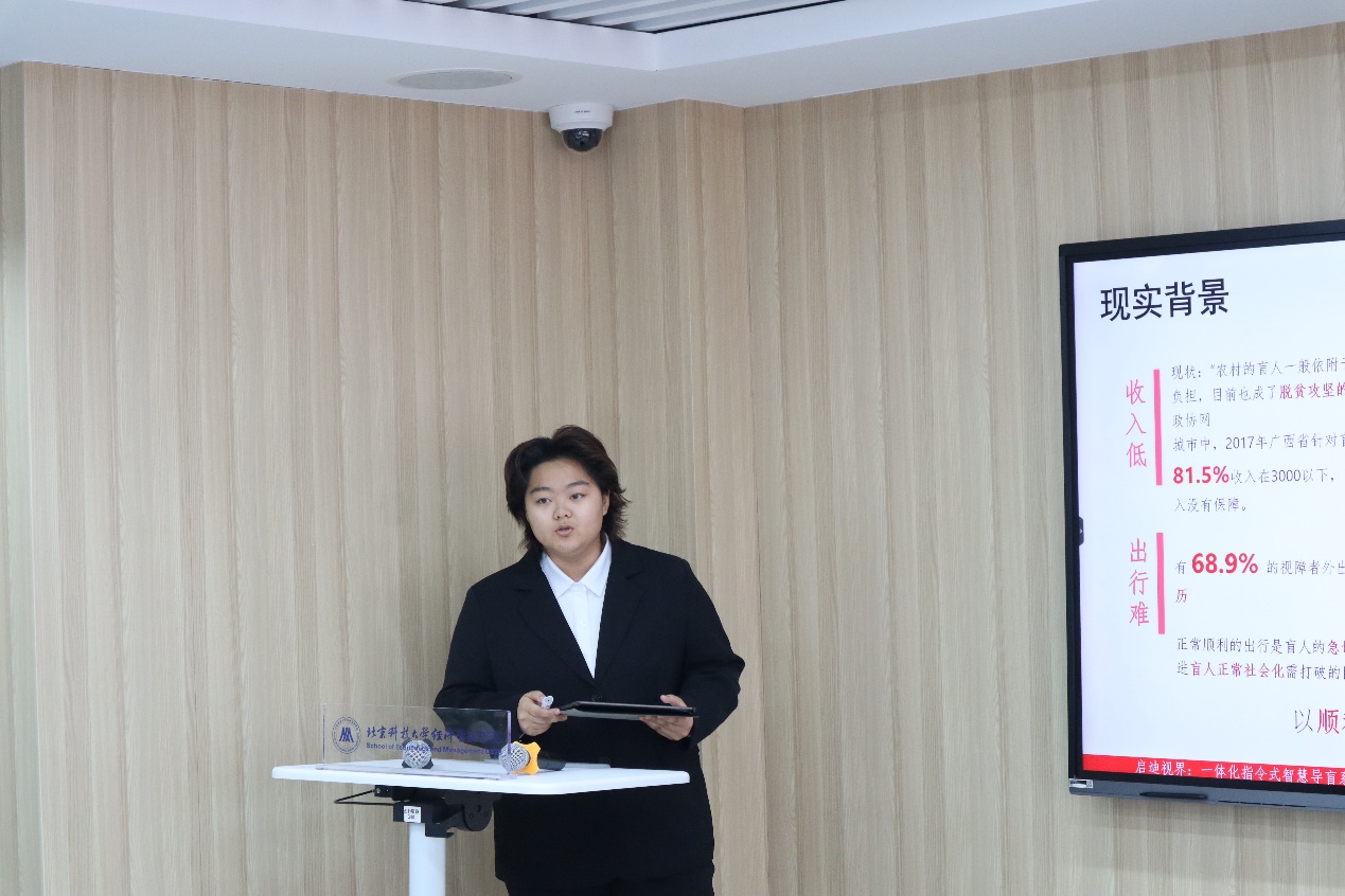 第四个项目是启迪视界--一体化指令式智慧导盲系统。团队致力于打造一个一体化指令式智慧导盲系统,以“智能导盲眼睛+智能盲杖”为载体,帮助视障人群解决出行问题。