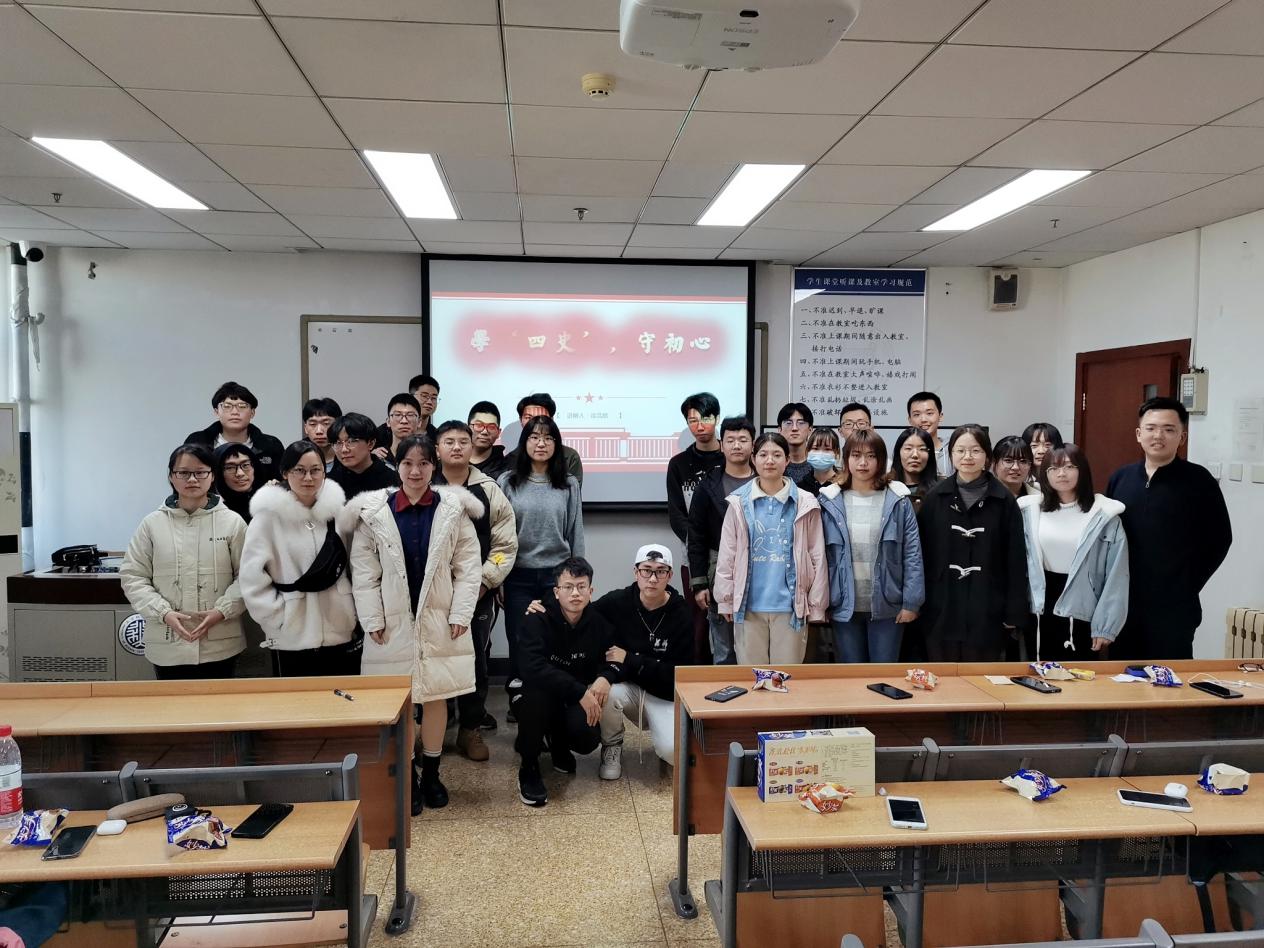 习近平总书记指出,只有坚持思想建党、理论强党,不忘初心才能更加自觉,担当使命才能更加坚定,要把学习贯彻党的创新理论作为思想武装的重中之重,并同学习党史、新中国史、改革开放史、社会主义发展史结合起来。为贯彻习近平新时代中国特色社会主义思想,跟进党的建设脚步,深入实践、切身体会四史精神,信管191团支部于2020年11月20日13:30在经管楼507举办了以“学‘四史’·守初心”为主题的团日活动。本次团日活动由信管191团支部书记徐浩然主持,信管191班全体同学参与活动。