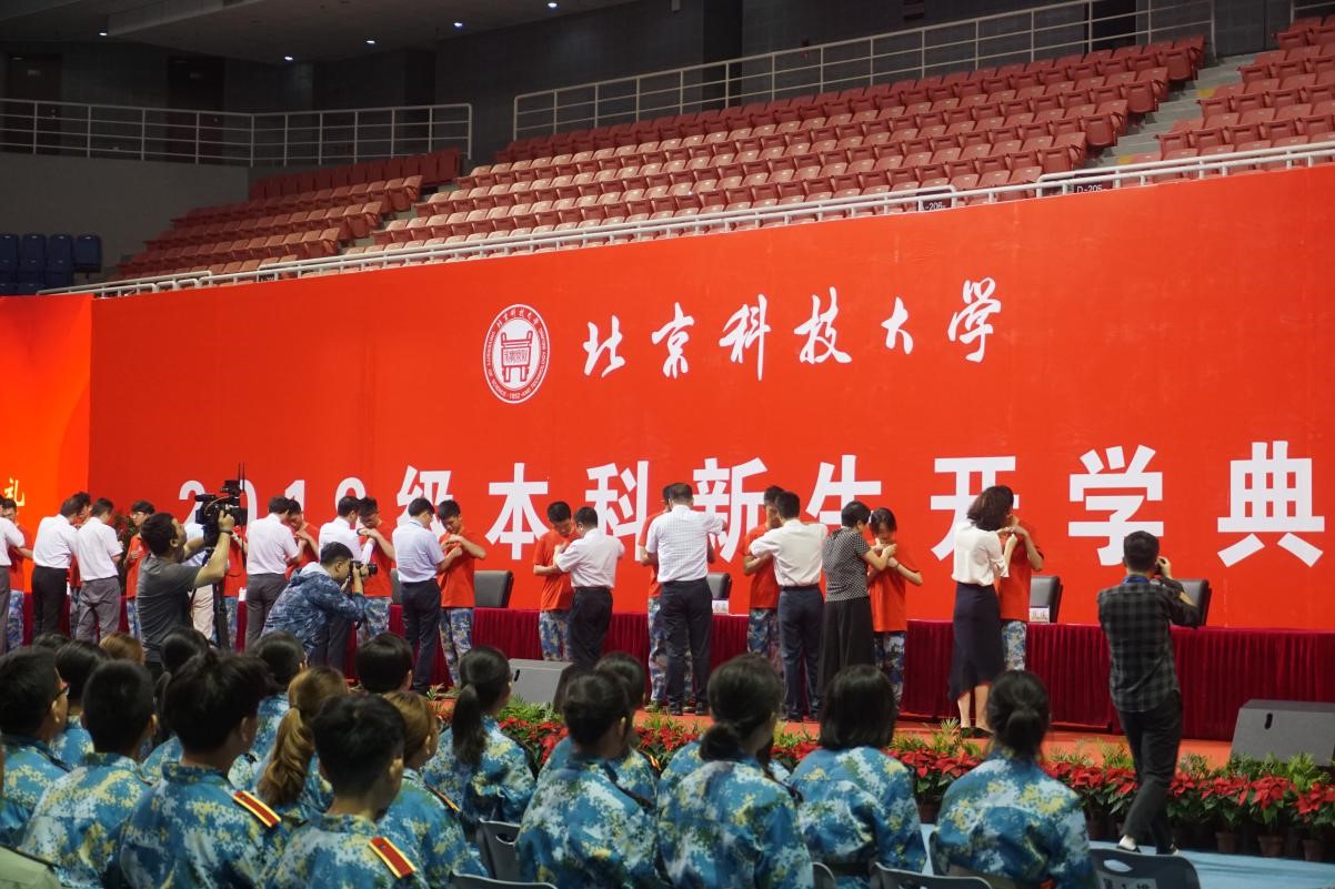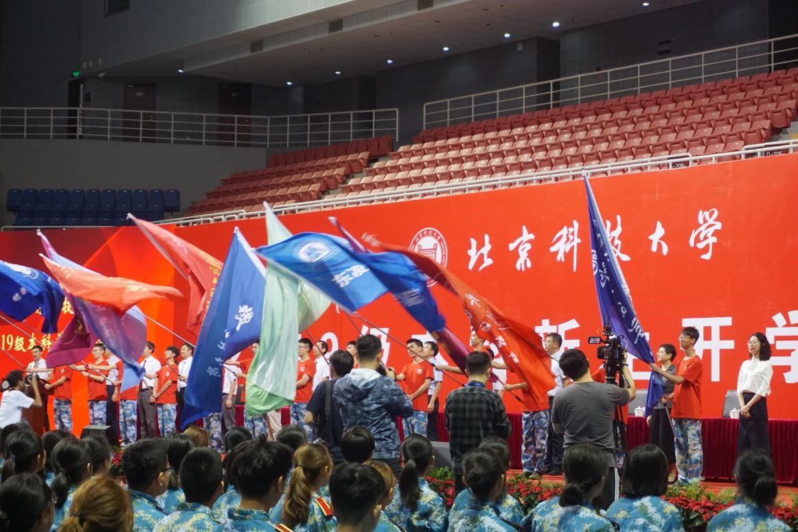 各学院院长为新生代表佩戴校徽并授旗。世界杯官网闫相斌院长郑重地将院旗交到新生手中,表达着对世界杯官网新生的美好希冀与祝愿,新生代表挥舞着院旗,姿态昂扬,放飞梦想。继新生代表、在校学生代表和杨仁树校长发言结束后,2019级新生开学典礼在激昂的校歌中圆满结束,小贝壳们即将踏上军训的征程。