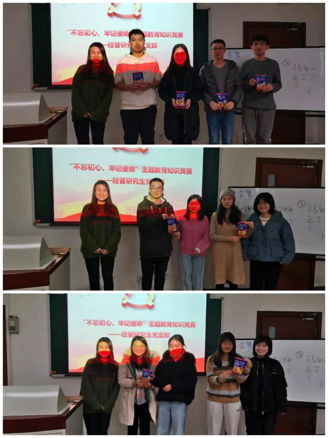 为深入推进“不忘初心、牢记使命”主题教育,12月30日下午3点30分,企管研19党支部于管楼504教室开展了“不忘初心、牢记使命”主题教育知识竞赛。竞赛由李响老师主持,主要包括习近平新时代中国特色社会主义思想、党的十九大精神、党章党规、主题教育“应知应会”、党务知识等相关内容。