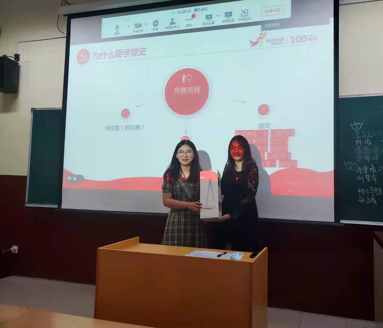 大会第三项,召开党史学习专题组织生活会,各位党员同志发表自己今年以来对党史学习的自我总结,并进行自我剖析,开展批评与自我批评活动。宋翔宇表示要克服身上存在的懒惰拖延的缺点;曹颖表示学党史不能单纯看碎片式的内容,要系统学习马克思的经典原著;兰岚表示要提高自己理论联系实际的能力;朱宇晴表示要多读原著,提高自己为人民服务的水平。宋翔宇同志希望大家都能严格要求自己,改正自身存在的不足之处。
