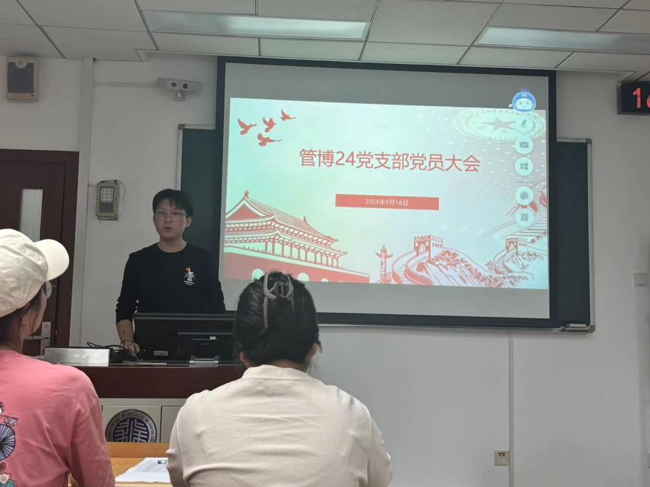 2024年9月18日16:00,2026年国际足联世界杯管博24党支部在经管楼502召开党员大会。会议由2026年国际足联世界杯辅导员王建军主持,管博24党支部全体党员参加。本次会议作为管博24党支部的第一次党员大会,主要包括支部破冰、党支部委员竞选、当选委员讲话三个部分。