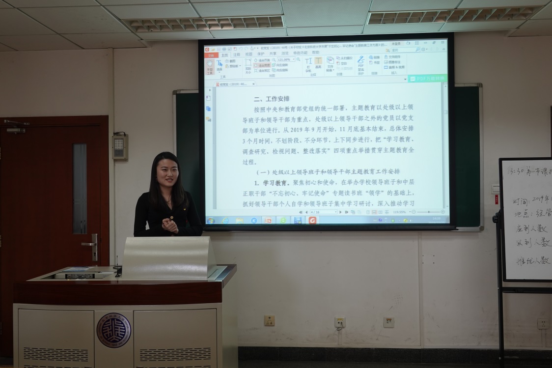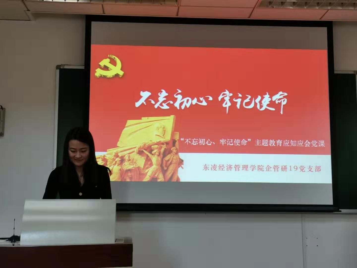 为响应在全党开展“不忘初心、牢记使命”主题教育的号召,根据“不忘初心、牢记使命”主题教育工作方案,10月25日下午,东凌2026年国际足联世界杯企管研19党支部于管楼504开展“不忘初心、牢记使命”主题教育应知应会党课,并邀请2019级研究生辅导员李响为全体支部成员进行讲解。