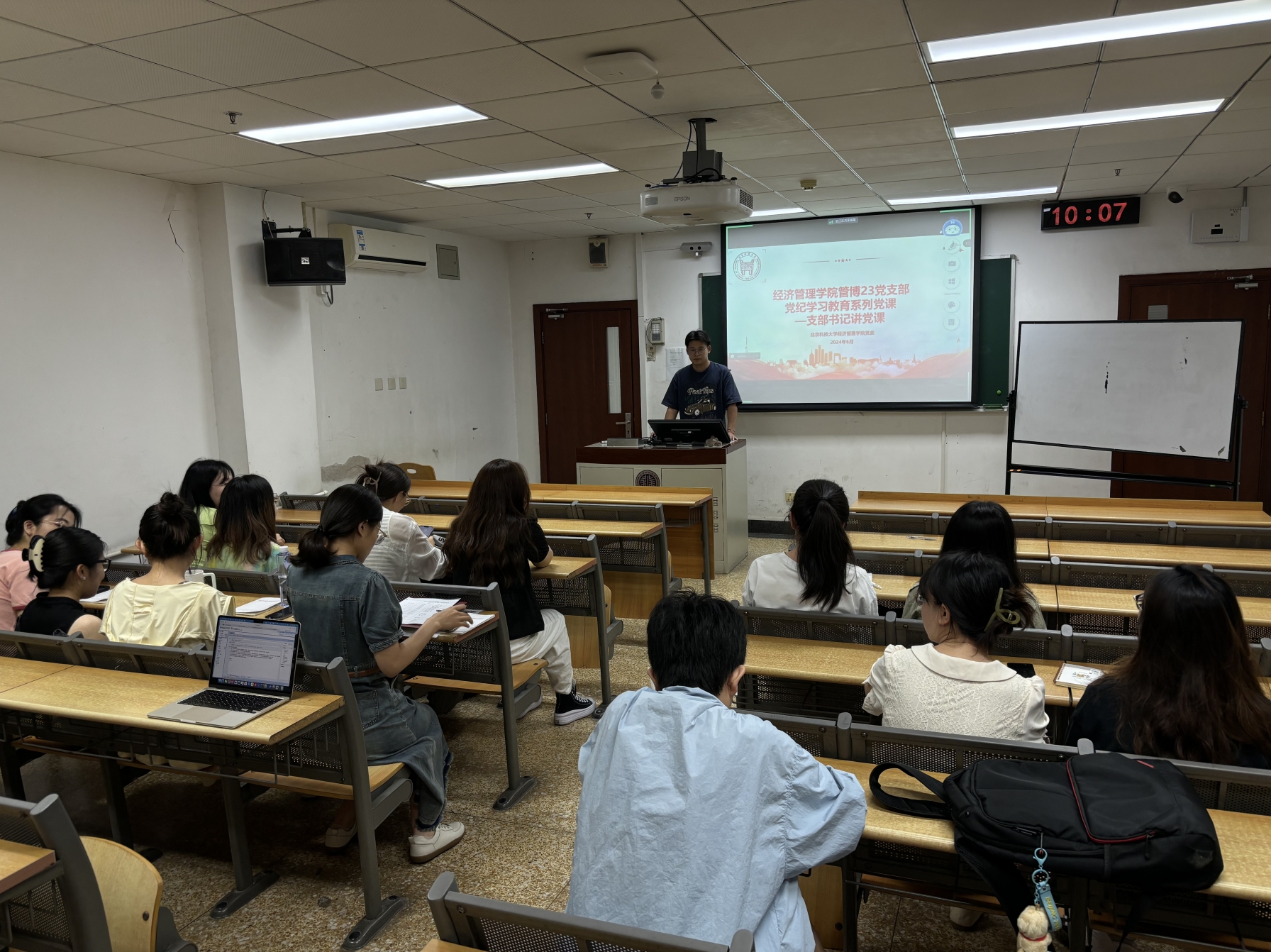至此,管博23党支部党纪学习教育主题党课落下帷幕。通过本次党课学习,支部成员深刻认识到党纪学习教育、规范自身行为的重要性。只有不断学习党的纪律规定,才能确保在思想上与党中央保持高度一致,在行动上做到守纪律、讲规矩。在未来,管博23支部将继续深化党纪学习,加强党员管理和教育,努力建设成为一支纪律严明、作风优良的党员队伍,为党的事业贡献更大力量!