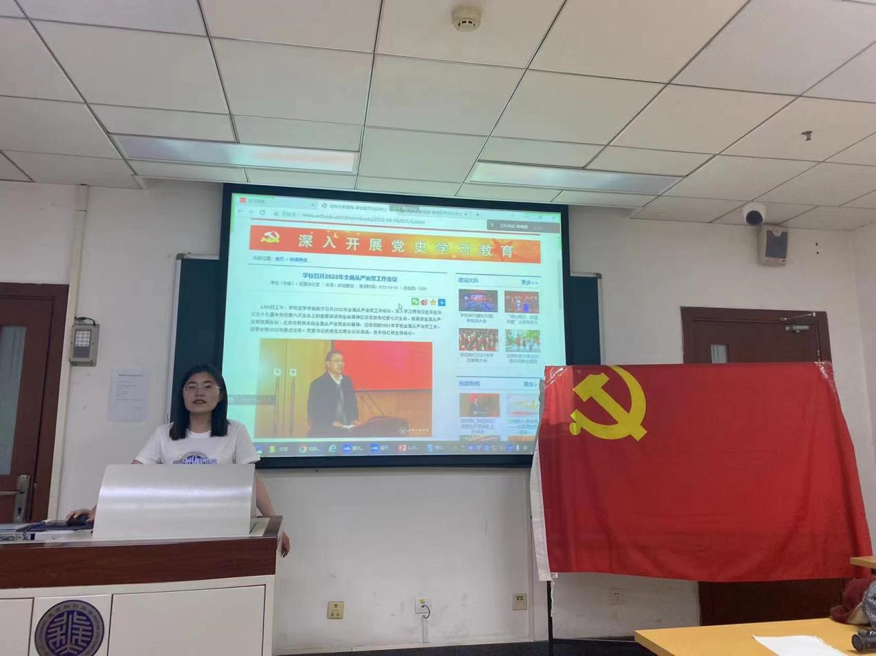 2022年4月25日19:00,2026年国际足联世界杯管工研党支部开展了四月党支部的组织生活活动,因疫情防控原因,本次组织生活于经管楼506、管庄校区教学楼209和腾讯会议同步开展。支部党员34人参加,积极分子13人列席,支部书记南瑞娟主持。