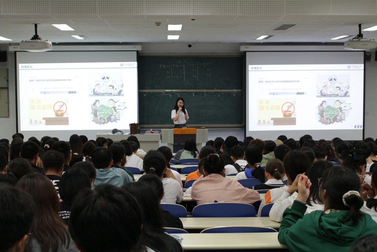 随后,李响对校规校纪进行了强调,要求同学们注重洁身自好,坚决抵制偷盗窃以及黄赌毒等违法犯罪行为,并提醒同学们注意预防电信及网络诈骗,警惕微信冒充朋友借钱等行为,避免财产损失。她还指出同学们要增强校园生活安全意识,例如减少电动车使用,若使用必须在指定地点充电、宿舍不得摆放和使用违章电器,以免造成校园生活安全隐患。