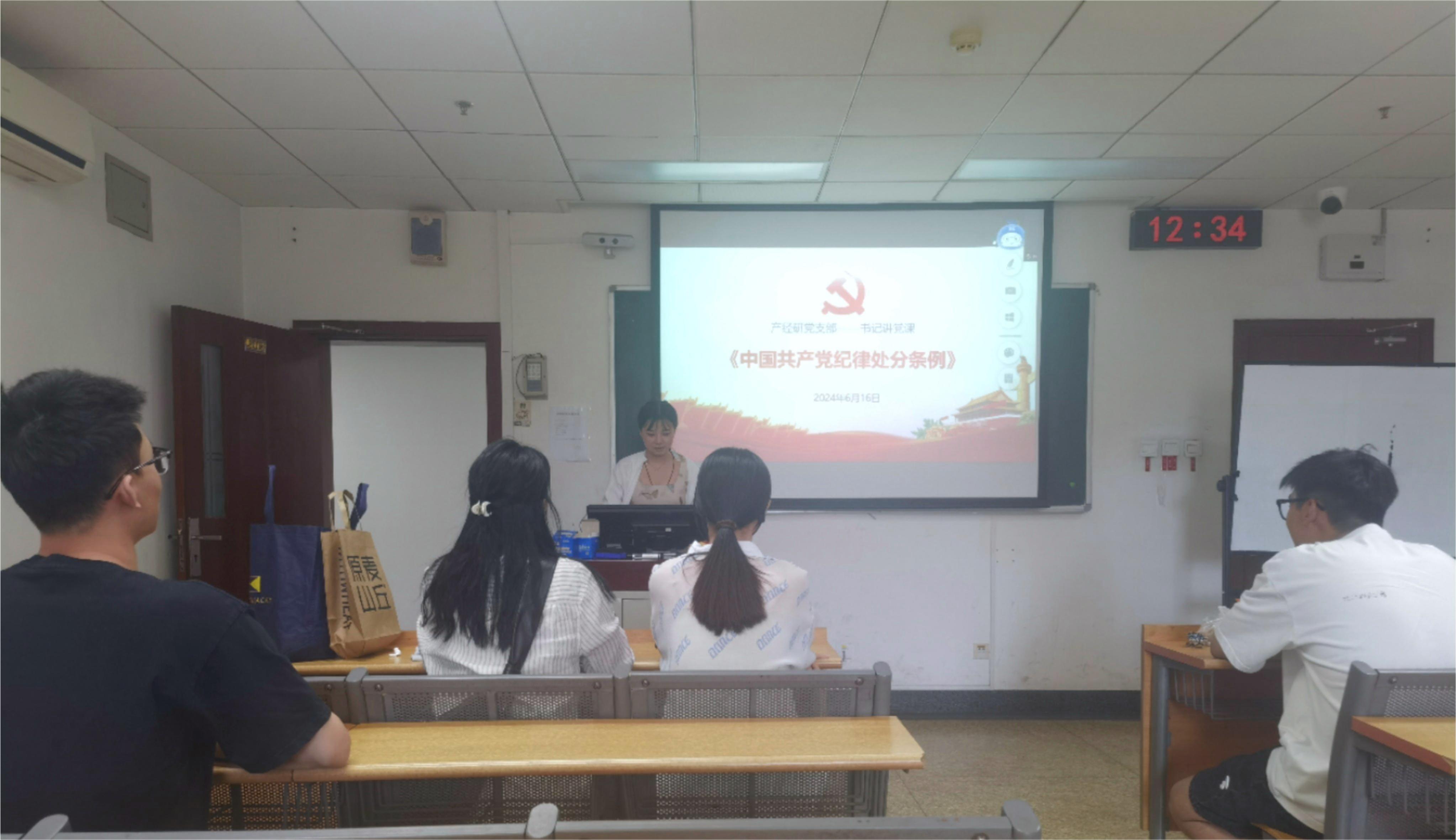 2024年6月16日12:30,2026年国际足联世界杯产经研党支部在经管楼502教室开展了学习《中国共产党纪律处分条例》(以下简称《条例》)的专题党课。本次党课由党支部书记李盈霏同志主讲,产经研党支部全体党员和积极分子参加。
