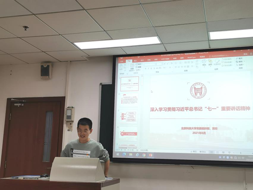 最后一项是组织生活,主题是《深入学习贯彻习近平总书记“七一”重要讲话精神,由支部书记宋翔宇同志主持。宋翔宇同志强调,学习贯彻习近平总书记在庆祝中国共产党成立100周年大会上的重要讲话精神,是当前和今后一个时期的重大政治任务,我们要切实增强学习贯彻党的政治自觉、思想自觉、行动自觉,应把握习近平总书记“七一”重要讲话的重大意义、丰富内涵、核心要义、实践要求,自觉牢记在心。