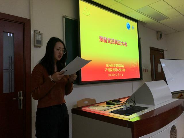 首先三位预备党员分别宣读了转正申请书,对自己一年的状况进行了总结,也指出了自身的不足。李响同志对自己过去一年的前半年作为学生和后半年作为辅导员的工作生活进行总结,希望自己在下一阶段更好地为研究生服务。