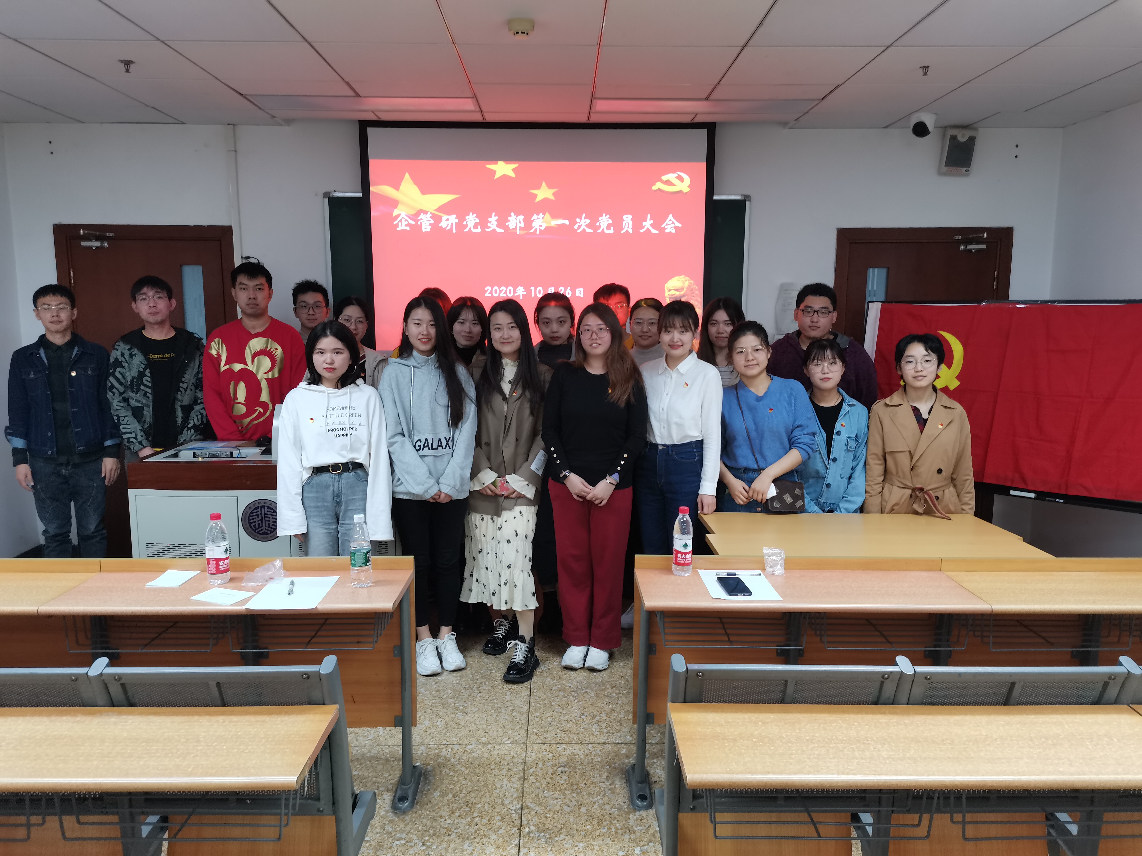 10月26日下午,企管研党支部于管楼506教室召开了第一次党员大会。会议由刘维主持,支部全体正式党员、研究生辅导员李响、丁源参加会议。