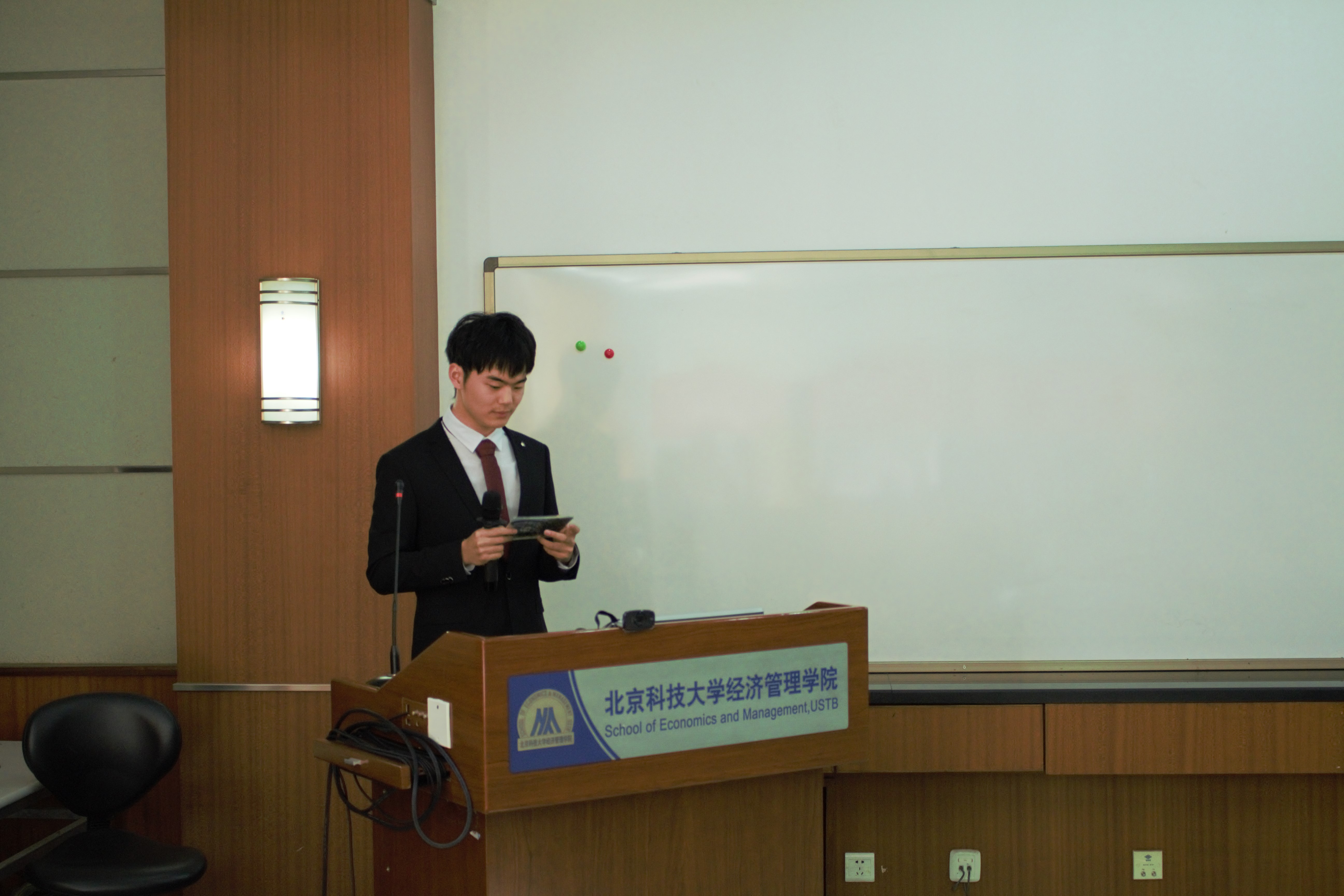 答辩环节,5位候选人依次上台,他们分别从个人介绍、班级风采、班级建设、未来展望等方面进行了精彩展示。作为班长,他们无一例外严谨负责,真心实意,以各自独特的管理理念带领班级在学风建设、思想引领、凝聚力建设、竞赛获奖、未来展望等方面取得了丰富的成果。