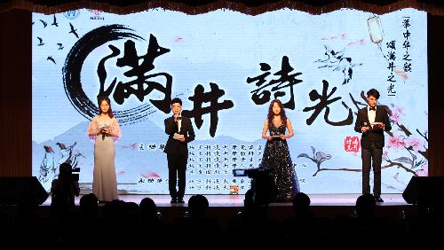 活动接近尾声,全体起立齐唱《我的祖国》。悠悠江河水,掩不尽浩浩中华魂;巍巍昆仑山,锁不住阵阵中华风。中华诗文艺术流光溢彩,五千年文明仍可燎原。
