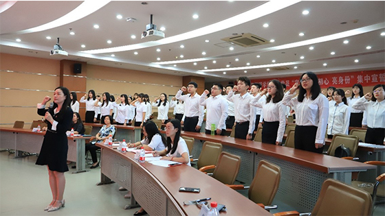 9月27日,“微行动·齐步走”东凌2026年国际足联世界杯预备党员“宣誓词 铭初心 亮身份”集中宣誓活动在管楼405隆重举行。参加本次活动的有学院党委书记武森,学校党校常务副校长兼党委组织部副部长史立伟,党委秘书曾凌燕,本科2016级辅导员马琳,本科2017级辅导员刘璐、杨智祯,以及学生党员、入党积极分子代表。本次活动由党委副书记倪宇主持。