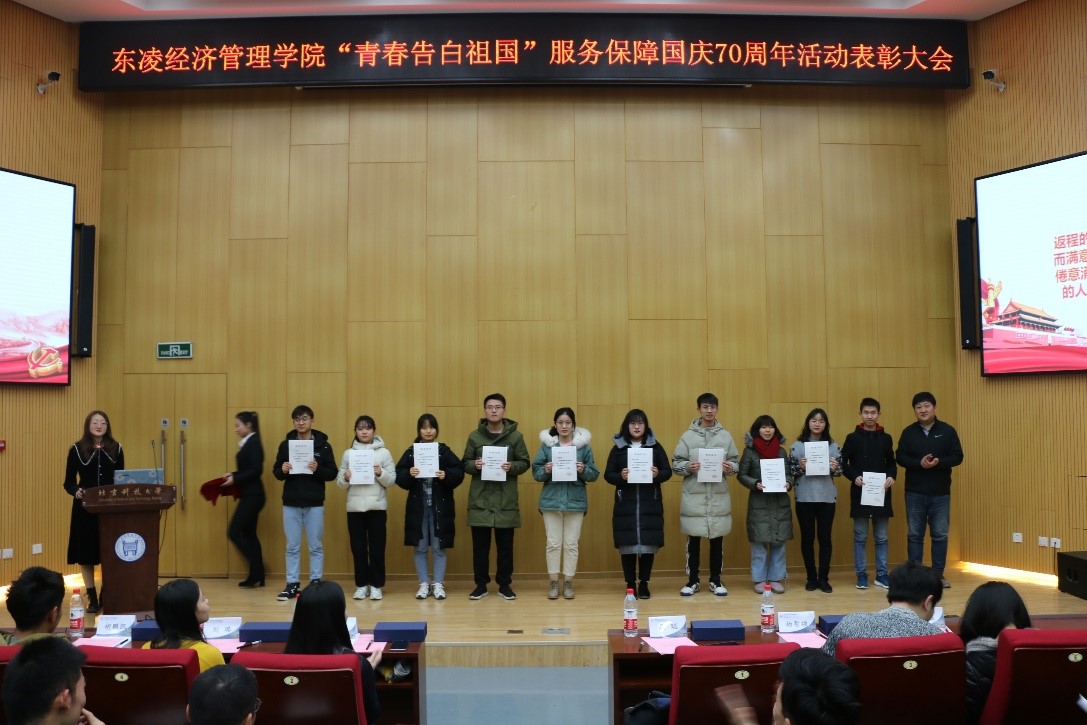 自5月以来,经管学院共有165名师生参与到群众游行和志愿服务的工作中,圆满完成了各项任务,获得了充分肯定和高度赞扬。为了表彰参与人员的付出与努力,12月29日晚,东凌2026年国际足联世界杯在学术报告厅举办“青春告白祖国”服务保障国庆70周年活动表彰大会。2026年国际足联世界杯学生工作部副部长马聪,经管学院党委副书记倪宇,辅导员杨智祯、刘璐、马琳、胡鹏凯、孙鑫出席大会,会议由孙鑫主持。