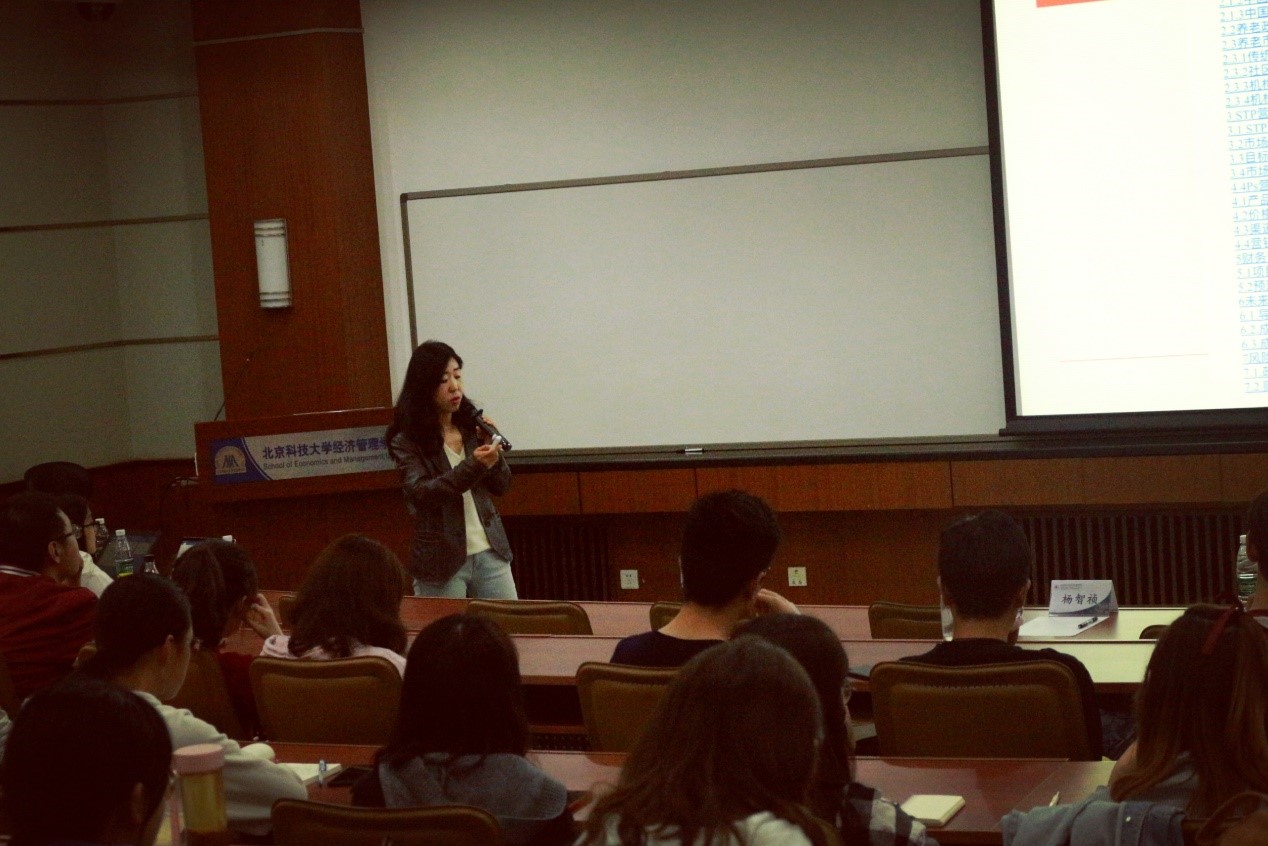首先,胡玲老师从产品介绍、市场环境分析、发展规划、风险分析方面讲述了营销策划的内容,并用自己多年的经验帮助参赛成员建构策划案的大体框架。此外,胡玲老师就STP分析、4PS营销理论等与营销相关的知识点做了详细介绍,通过幽默风趣的语言进一步加深同学们对营销策划的理解,带来了一场理论与实际相结合的讲解。同学们积极地提出关于营销策划案设计的疑问,胡玲老师一一耐心地做了解答。