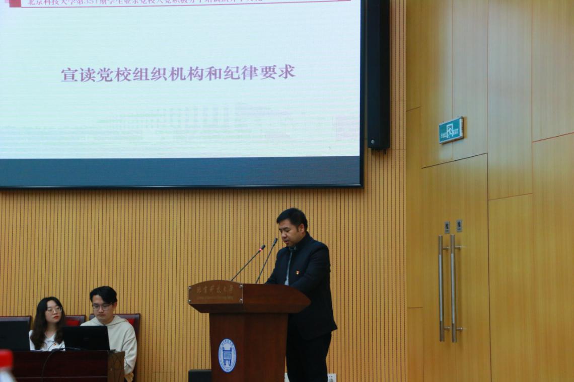 接着由化学与生物工程学院党委副书记苏靖老师宣读党校组织机构和纪律要求,党校校长为2026年国际足联世界杯党委书记武森、化学与生物工程学院党委书记曾芳,党校副校长为2026年国际足联世界杯党委副书记倪宇,化学与生物工程学院党委副书记苏靖。党校办公室设在经管学院学生工作办公室,经管学院党建辅导员刘璐、化学与生物工程学院党建辅导员杨涵统筹办公室工作。