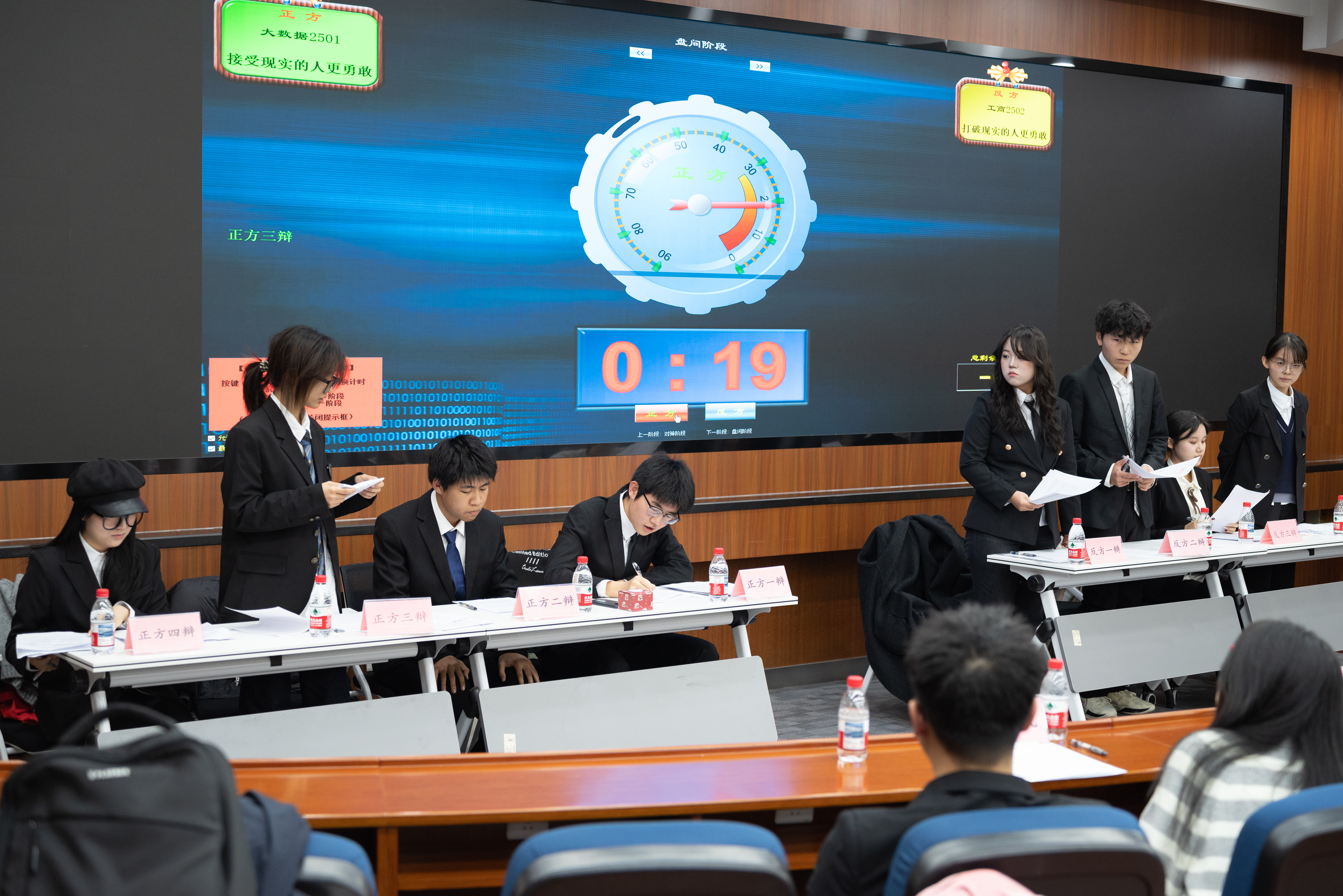 比赛正式开始后,正反双方两支队伍共同为大家带来了一场精彩绝伦的辩论赛。开篇立论文采斐然,清晰明了;驳论盘问暗藏机锋,反应敏锐;言辞交锋犀利敏捷,思维灵动;最后结辩总揽全局,字字珠玑。激烈的辩论场面让人心潮澎湃,现场气氛热烈。