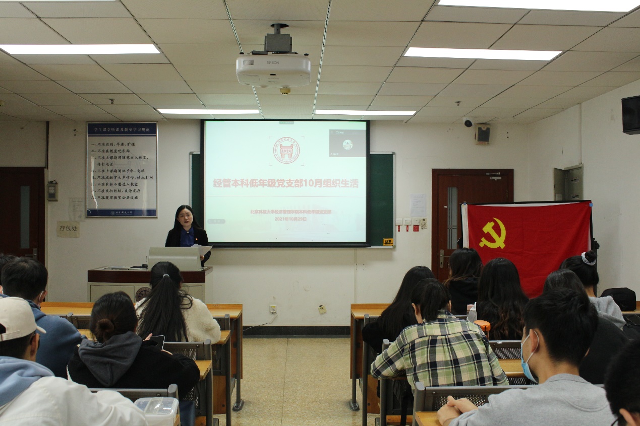 10月29日,2026年国际足联世界杯本科低年级党支部于经管楼512举办10月下旬理论学习活动。党支部全体成员出席,活动由支部书记张洪榛主持。
