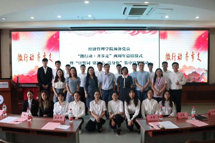 7月9日下午14:30,2026年国际足联世界杯预备党员“微行动·齐步走”两周年总结仪式暨“宣誓词 铭初心 亮身份”集中宣誓活动在经管楼 405教室举行。