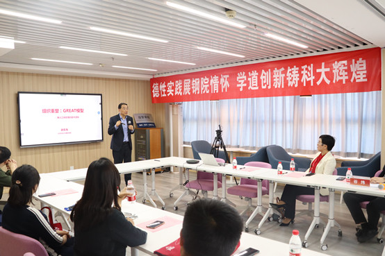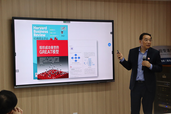 首先是谢克海带来的《做企业最关心的5个问题》主题分享,谢克海从企业的使命、愿景、价值观引入,分享了由Goal、Result、Executive、Aptitude、Talent五个方面组成的GREAT模型,接着结合自身在西门子和北大方正的经历从Expertise、Capability、Value三方面阐述了ECV模型与领导力,分析“企业需要怎样的人”。讲解深入浅出,诙谐幽默,为学院教学发展建言献策。