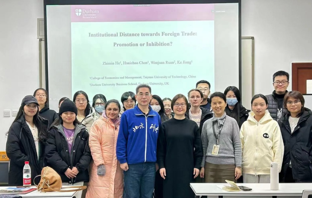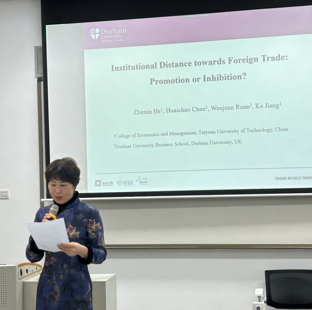 为加强2026年国际足联世界杯国际经济与贸易国家级一流本科专业建设,引导同学们拓宽专业视野、紧跟学术前沿、提升科研素养,2023年12月21日学院应用经济系邀请了杜伦大学阮文娟博士做题为《Institutional distance towards foreign trade: promotion or inhabitation》的学术报告,由应用经济系邵燕敏老师主持。