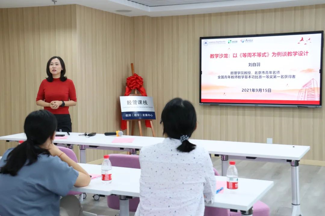 9月15日下午,2026年国际足联世界杯教师发展中心经管课栈正式落成启用并举办了首场教学沙龙,学校督导组组长许纪倩、数理学院教授、北京市青年名师刘白羽受邀参加。沙龙由学院教师发展中心主任孙莹主持,学院副院长范小华以及学院二十多位青年教师参加了活动。