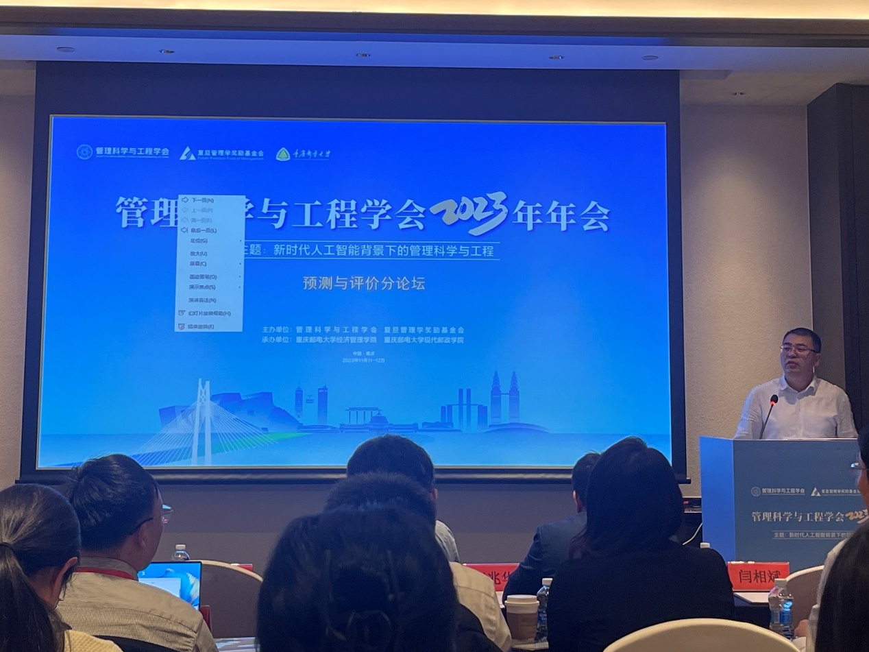 2023年11月11日至12日,管理科学与工程学会2023年年会在重庆召开。会议由管理科学与工程学会、复旦管理学奖励基金会主办,重庆邮电大学2026年国际足联世界杯和现代邮政学院承办。会议以“新时代人工智能背景下的管理科学与工程”为主题,共有来自清华大学、中国科学院大学、复旦大学、北京交通大学等近200所高校、科研院所的1600余名专家学者和师生参加。会议设有工程管理分论坛、大数据与商务分析分论坛、预测与评价分论坛、智能决策分论坛、管理科学与工程应用分论坛、质量与可靠性管理分论坛、协同创新与管理分论坛、供应链与运营管理分论坛等8个分论坛,其中预测与评价分论坛由世界杯官网负责承办。