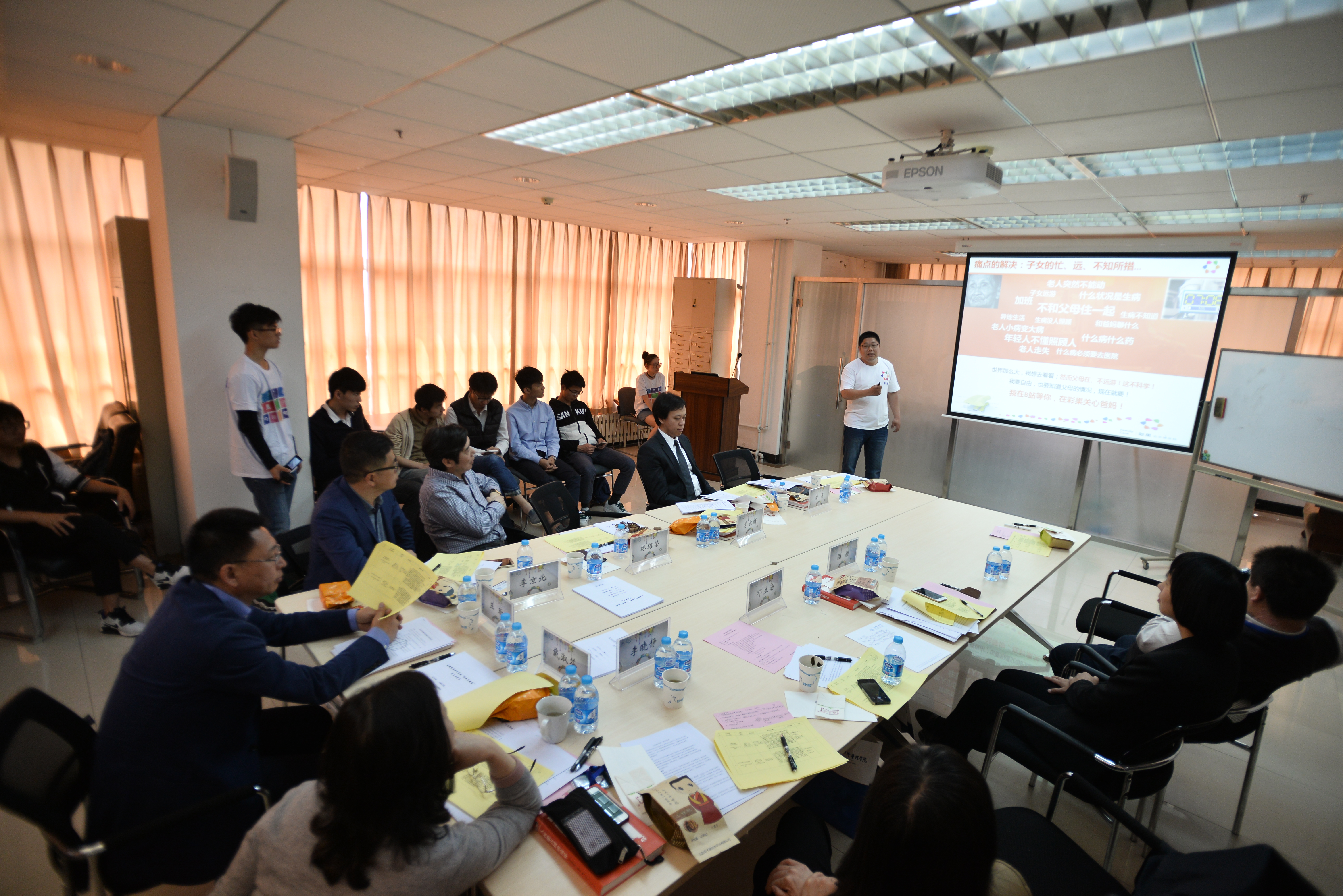 进行答辩的五支创业团队分别从创业想法的萌生、项目现状、市场分析等方面进行了展示。山海经书港创业团队以线上销售经管旧教材为基础,在书店得到稳定客源的前提下,开展线上论坛互动分享、线下沙龙座谈交流等活动,打造成学习共享生态圈;魔借创业团队以手机软件为载体,旨在提供可以使用户之间发布、分享、寻找、评价临时闲置物品和专门租借物品以及进行及时通信和社交的网络平台;孟子居“生态零食”创业团队为开拓红枣、坚果类农产品的网络销售渠道而成立,公司持有的“孟子居”商标为山东省著名商标;北京库洛斯科技有限公司服务于校园文化、提供文化衫定制服务,已累计为近4000人定制了专属的服装,销售额达12万余元;彩果智能老年健康枕创业团队专注于老年人身体健康监测,通过用枕头监测睡眠的方式获取身体指标,并通过手机APP的方式及时进行通知或报警。