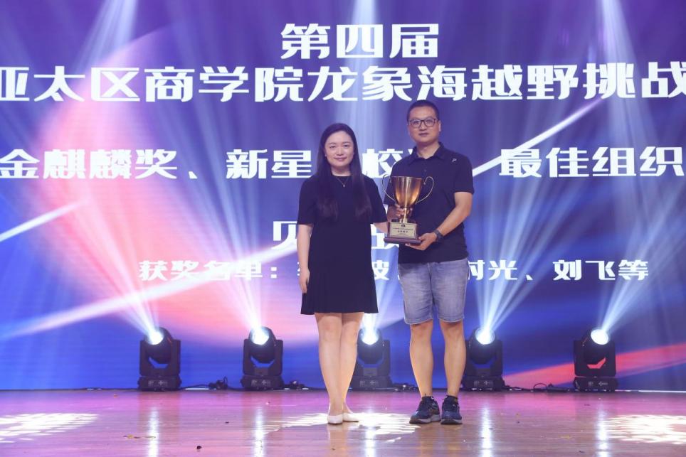 第四届亚太区商学院龙象海越野挑战赛最高荣誉金麒麟奖,新星院校奖,最佳组织奖颁奖