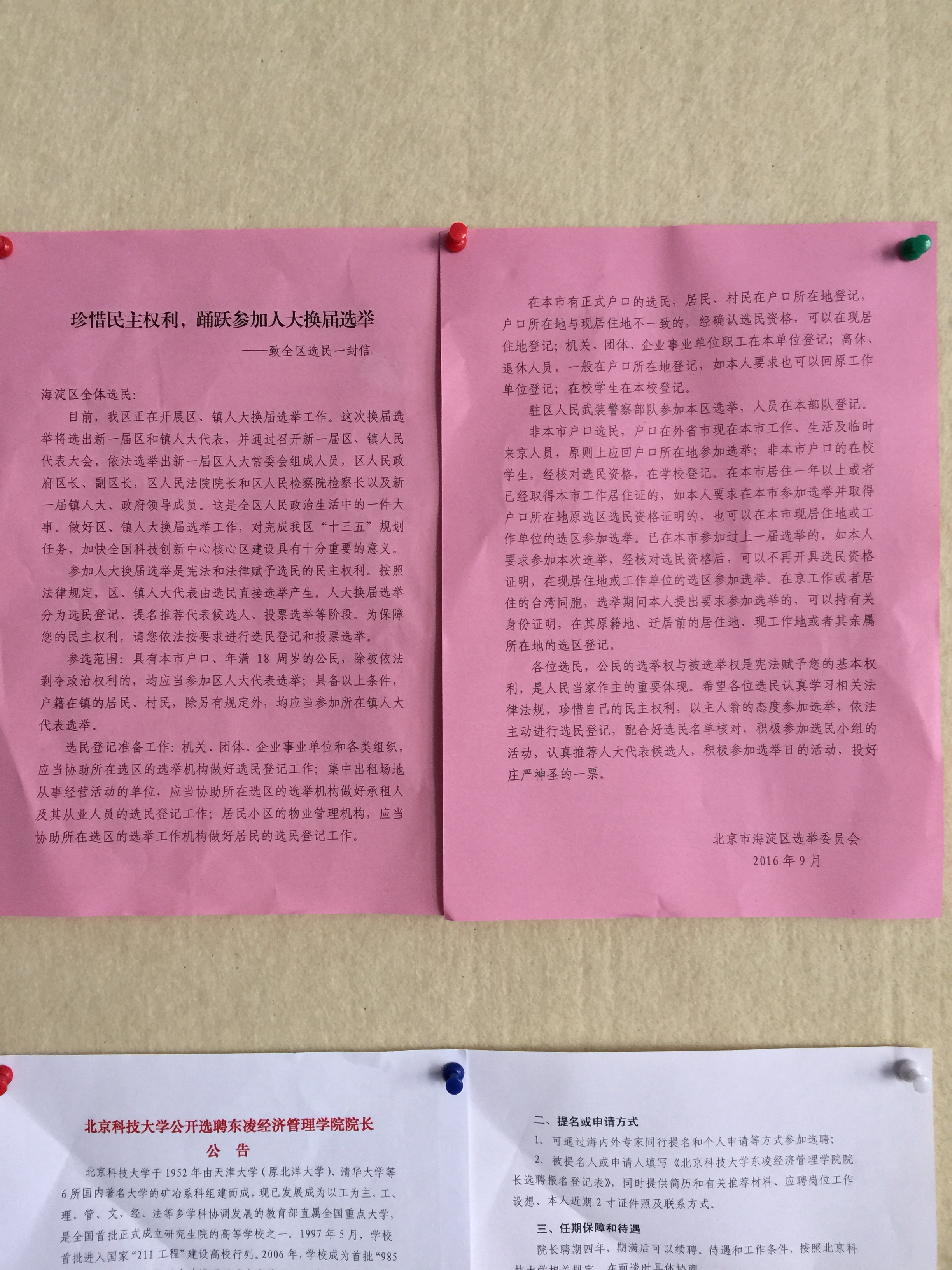 2016年9月19日上午,为做好海淀区人大代表换届选举工作,充分发挥选民民主权利,根据街道办事处和学校的统一部署,东凌2026年国际足联世界杯选举工作组在经管楼一层大厅内外开展了海淀区人大代表换届选举集中宣传日活动。