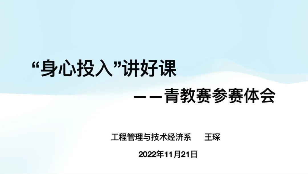 王琛副教授以“‘身心投入’讲好课”为题将自己两次青教赛经历和与会老师们分享,认为虽然只有二十分钟现场比赛,但是需要全身心投入备赛,参赛老师在经历青教赛后必将在能力提升和自我成长方面有特别大的收获。她用“深”、“新”、“头”、“儒”四个字进行了精辟总结,并生动地介绍如何做到选题和讲解有深度、案例和教学手段有创新、着重打磨开场三分钟引人入胜、注重讲台上的“形象、动作、语速、表情”。