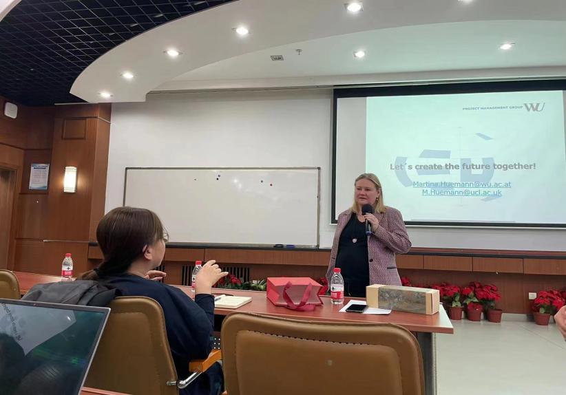 2023年10月31日,国际项目管理领域著名教授、伦敦大学学院(UCL)/维也纳经济大学(WU Vienna)的Martina Huemann教授应工程管理与技术经济系杨青教授邀请,访问世界杯官网并做学术交流。Martina Huemann教授任国际项目管理领域最高水平学术期刊《International journal of Project Management》主编、《Project Leadership and Society》期刊创始主编。Martina Huemann教授在研究、咨询和教学方面有超过20年的经验,在人力资源管理和项目管理领域发表了大量文章,她在项目导向组织的人力资源管理研究获得了国际项目管理协会(IPMA)研究大奖。