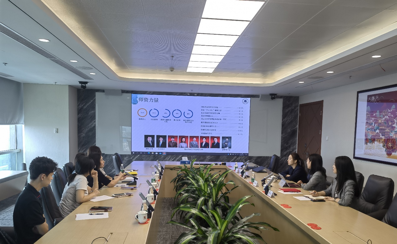 张敏向来访师生详细介绍了大唐财富的建设背景、发展理念、行业态势、企业现状等情况,大唐财富深耕财富管理行业11年,主要针对高净值客户人群进行服务,通过构建全品类采集、全方位规划、全球化配置、全生命周期管理的产品体系和协同一流的资产管理机构,一站式满足客户全方位财富管理需求。她结合公司各类岗位对人才需求进行了细分,提出建立校企之间用人快速直通道的构想。张敏还特别介绍了大唐财富践行企业社会责任,参与大凉山“学前学会普通话”公益活动,积极支持教育扶贫,并表示大唐财富愿意积极参与高校人才培养,服务国家与社会。