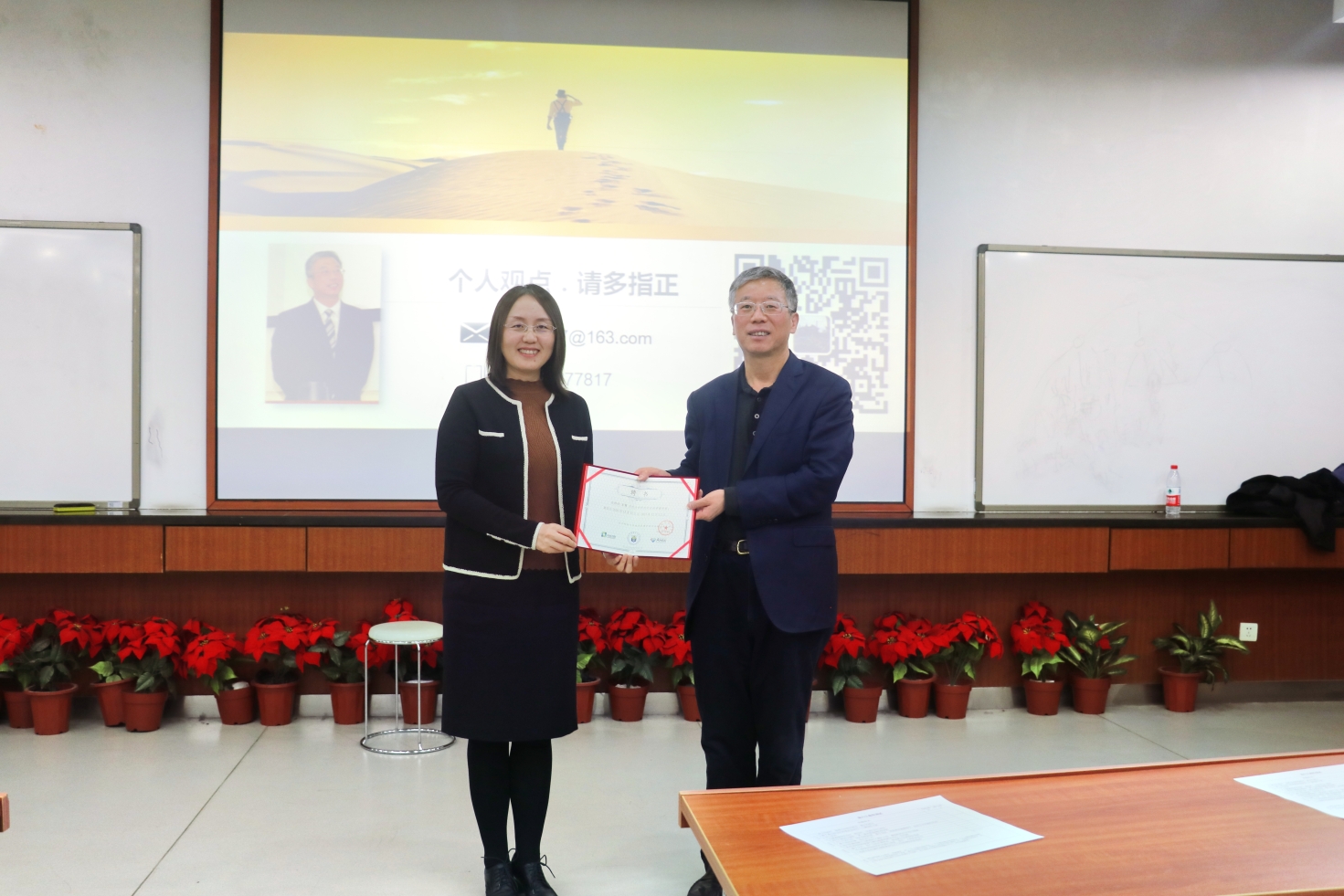 在同学们热烈的掌声中,李晓静副教授向王喆博士颁发了学院聘书,正式聘请王喆博士作为志远论坛的讲座专家。