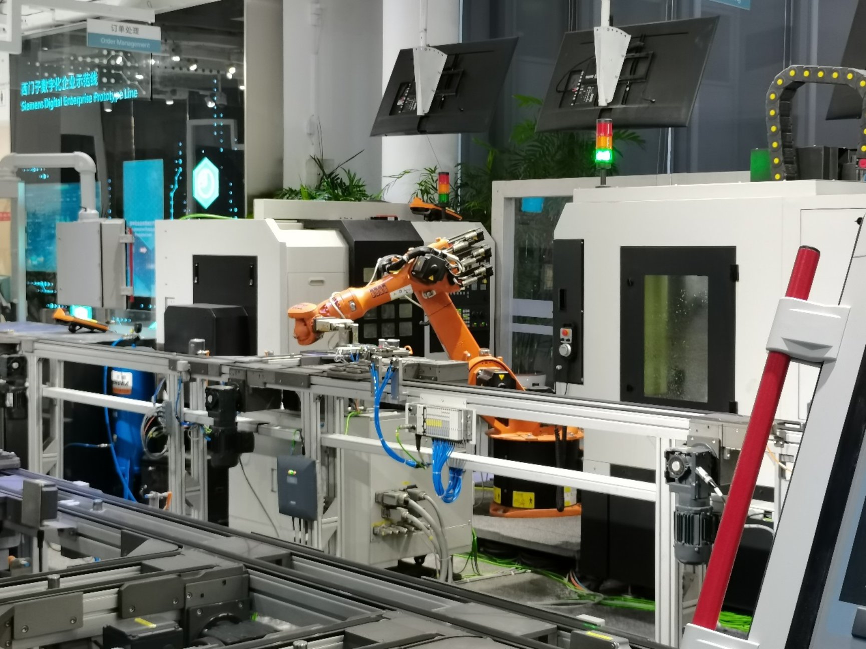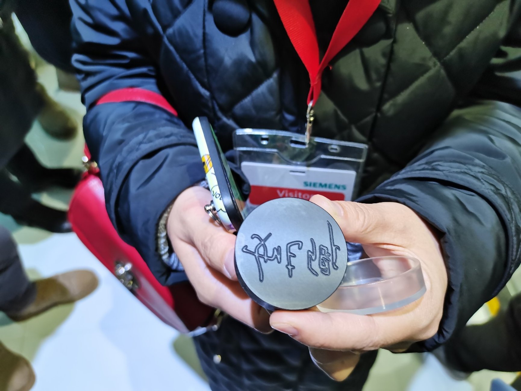 让人更加印象深刻的是接下来的西门子数字化企业示范生产线的参观,西门子的向导以姓名印章为例,让MBA师生亲身体验了姓名印章从设计、虚拟模拟、制造、组装、检验到包装的整体流程。
