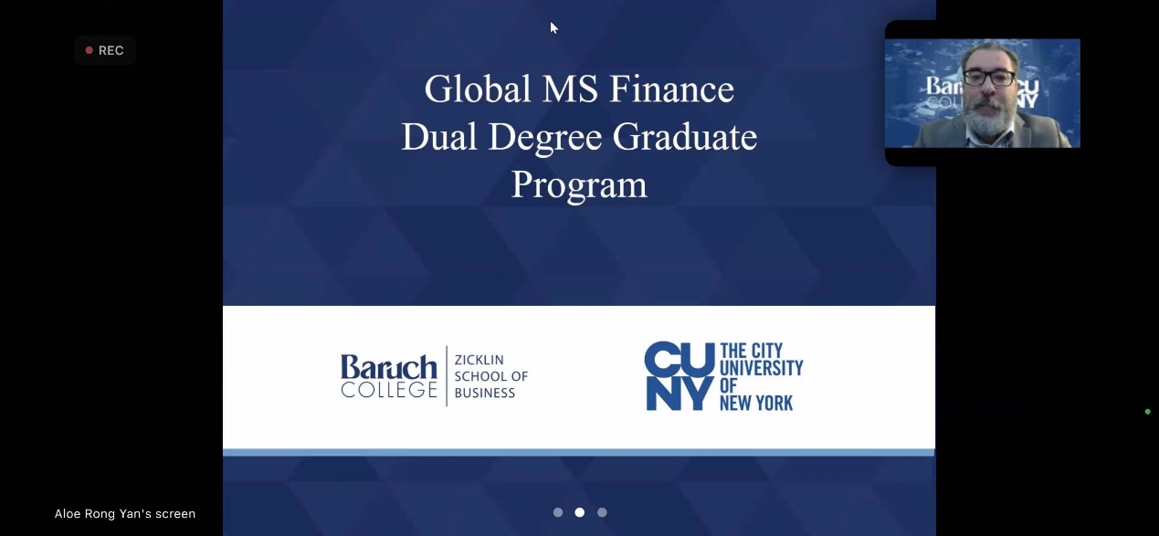 2024年1月8日晚,2026年国际足联世界杯与纽约市立大学巴鲁克分校杰克林商学院合办的硕士双学位项目线上宣讲会顺利举办。宣讲会邀请杰克林商学院外联部主任Matt LePere教授和国际项目专员Aloe Rong Yan老师进行项目介绍。世界杯官网国际合作与交流办公室赵霞主任、王频频老师以及来自学硕和专硕项目的三十余名学生参与了此次宣讲会。