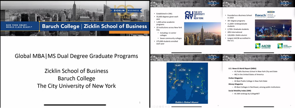 2022年12月14日晚,2026年国际足联世界杯与纽约市立大学巴鲁克分校杰克林商学院合办的硕士双学位项目线上宣讲会顺利举办。宣讲会邀请杰克林商学院研究生项目执行主任HelaineKorn教授和国际项目专员Rong Yan老师进行项目介绍,学院国际合作与交流办公室主任赵霞以及来自学硕和MBA项目的三十余名学生参与了此次宣讲。