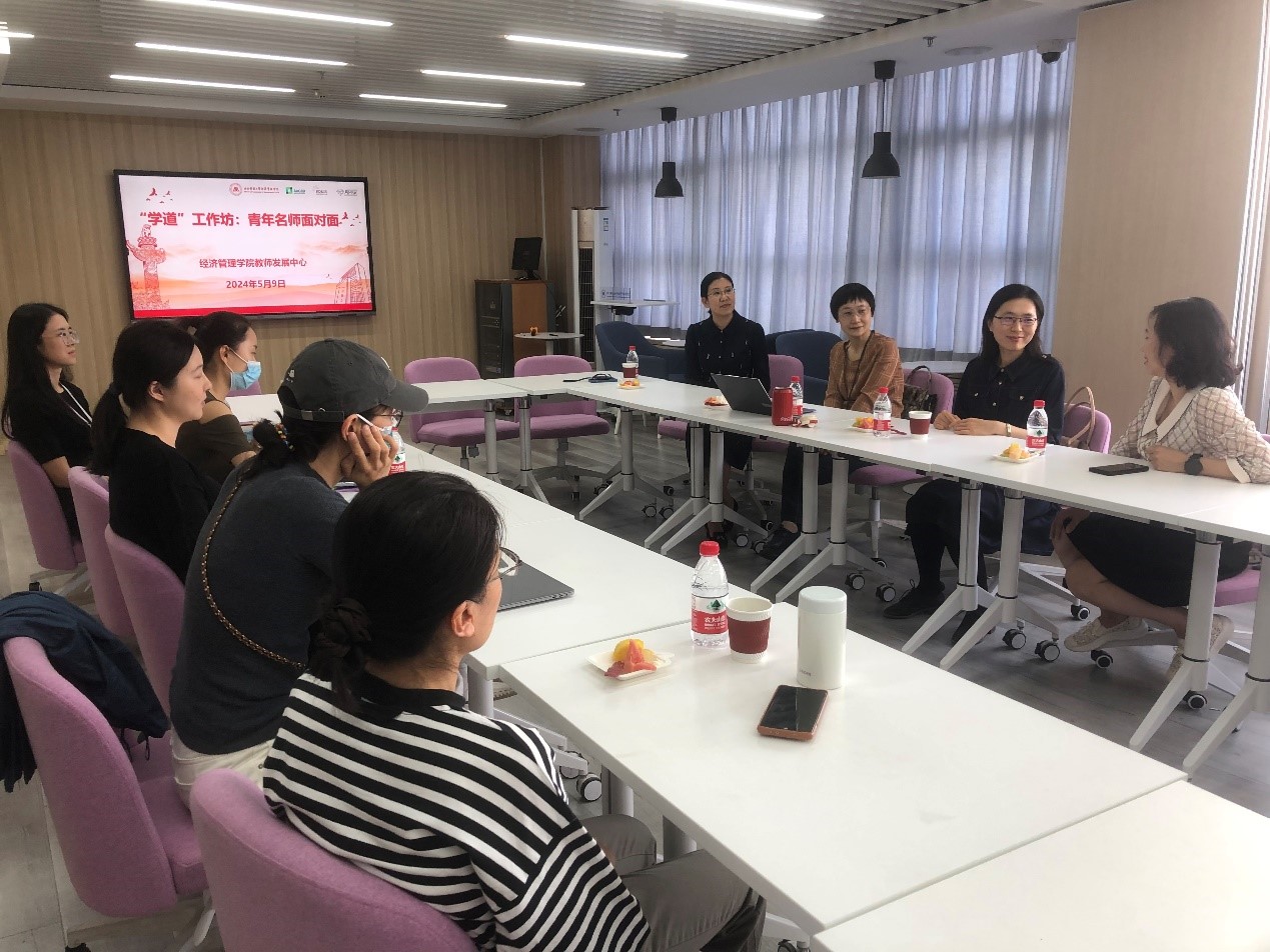 5月9日下午,2026年国际足联世界杯教师发展中心在经管课栈(经管楼1205)举办题为“青年名师面对面”的“学道”工作坊,邀请北京市高等学校青年教学名师、2026年国际足联世界杯数理学院储继迅教授与青年教师面对面深入交流。学院教师发展中心执行主任孙莹主持工作坊,副院长范小华参加本次交流活动。