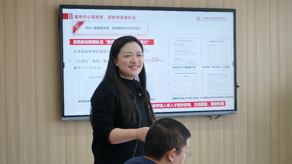 学院行政副院长、工会主席倪宇代表学院向莅临的各位领导汇报了近年来学院工会在赋能师资队伍、服务教职工、联动校友、丰富文化生活以及助力学院中心工作等方面所做的努力和取得的成果,并重点介绍了在建设“模范职工小家”过程中形成的特色做法和亮点工作。